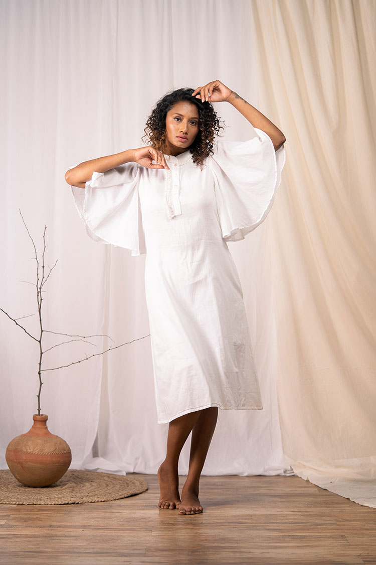'A BLOOMING FLOWER' Off White Mulmul Cotton Dress