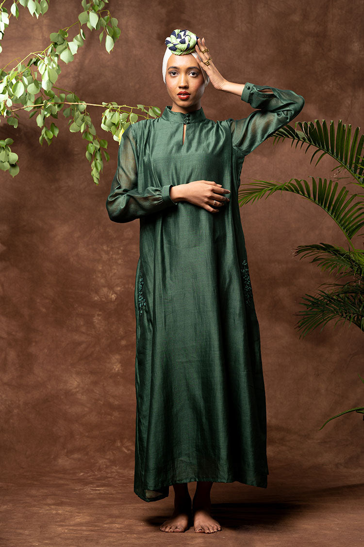 'ANAYA' Handloom Chanderi Silk Hand Embroidered Dress