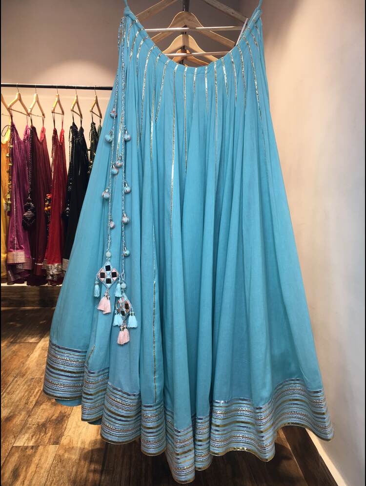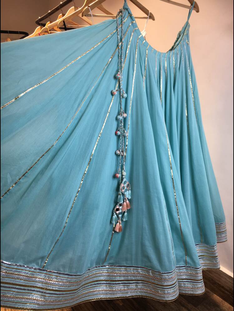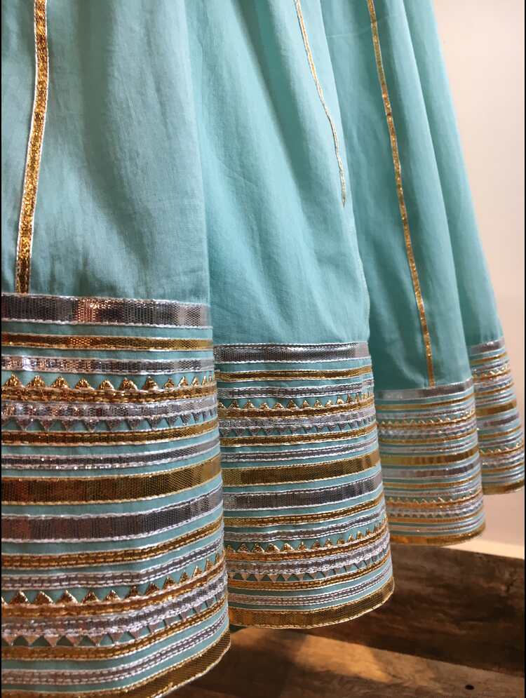 'Apsara' Mint Green Mulmul Cotton Kalidar Ghaghra