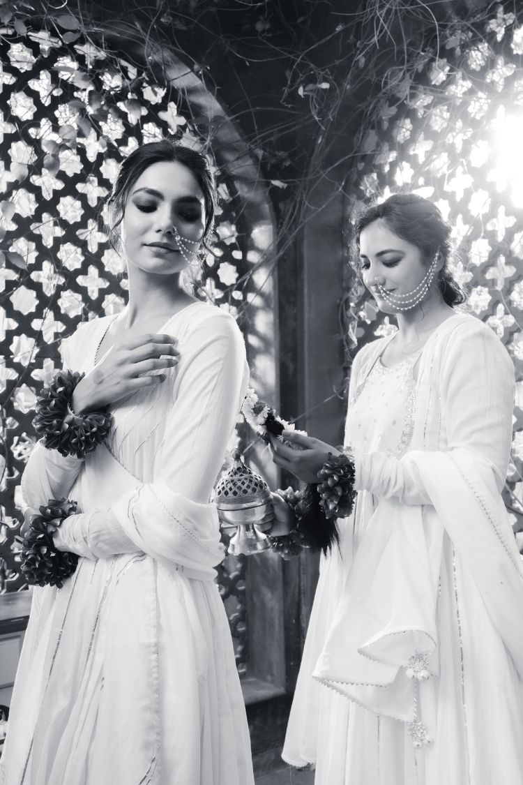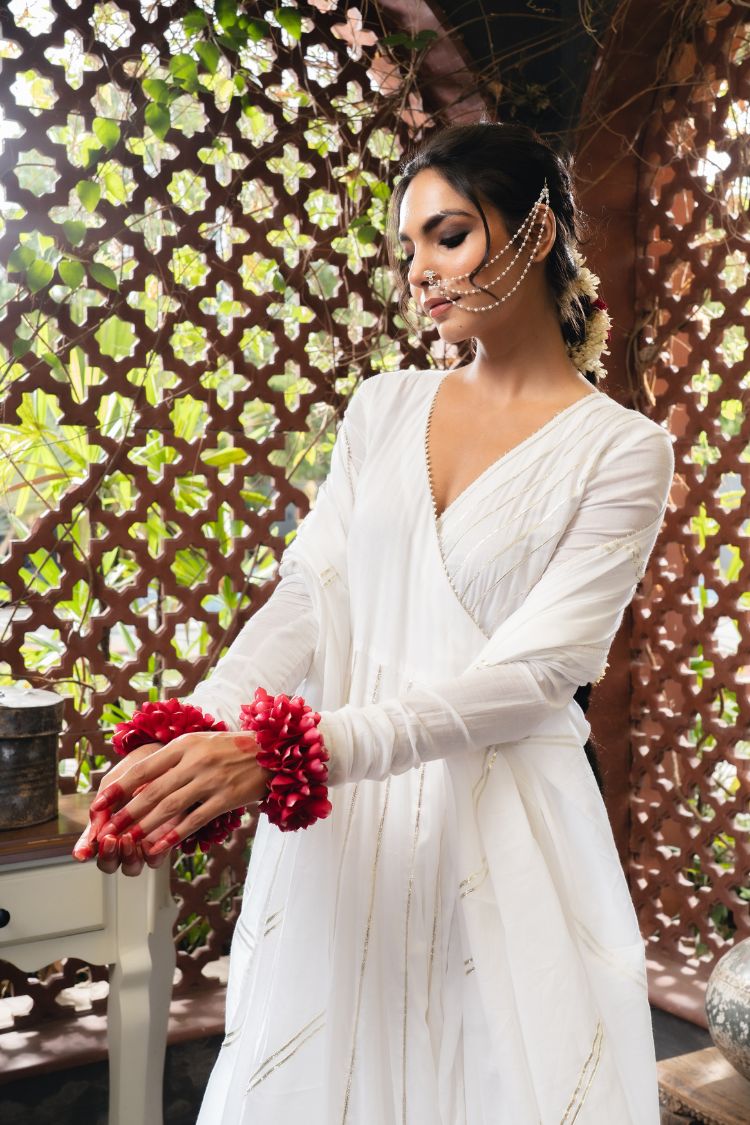 'BEEBO JAAN' White Mulmul Cotton Anarkali (Set Of 3)