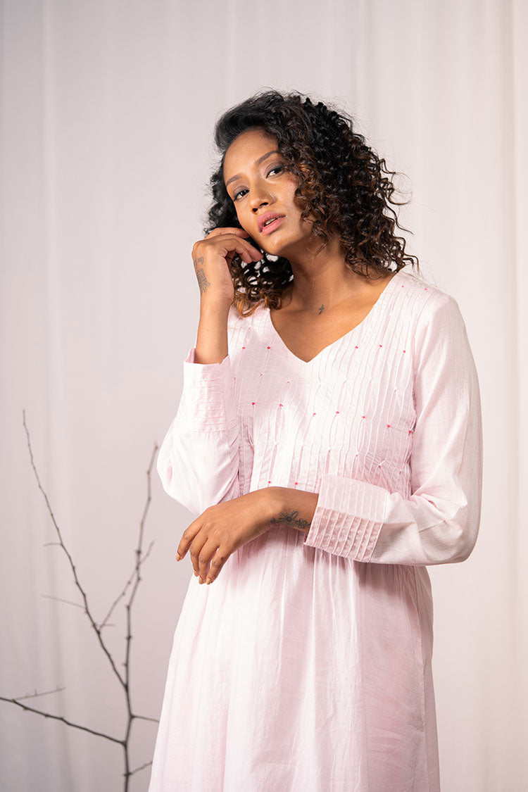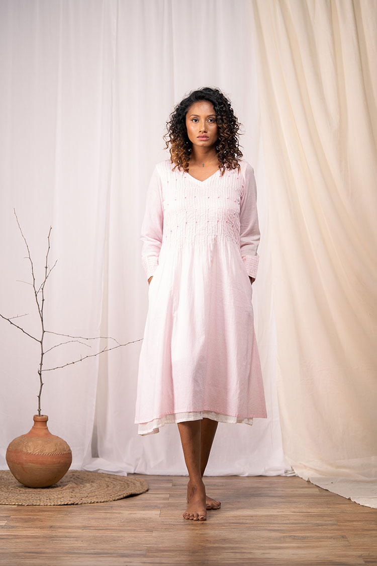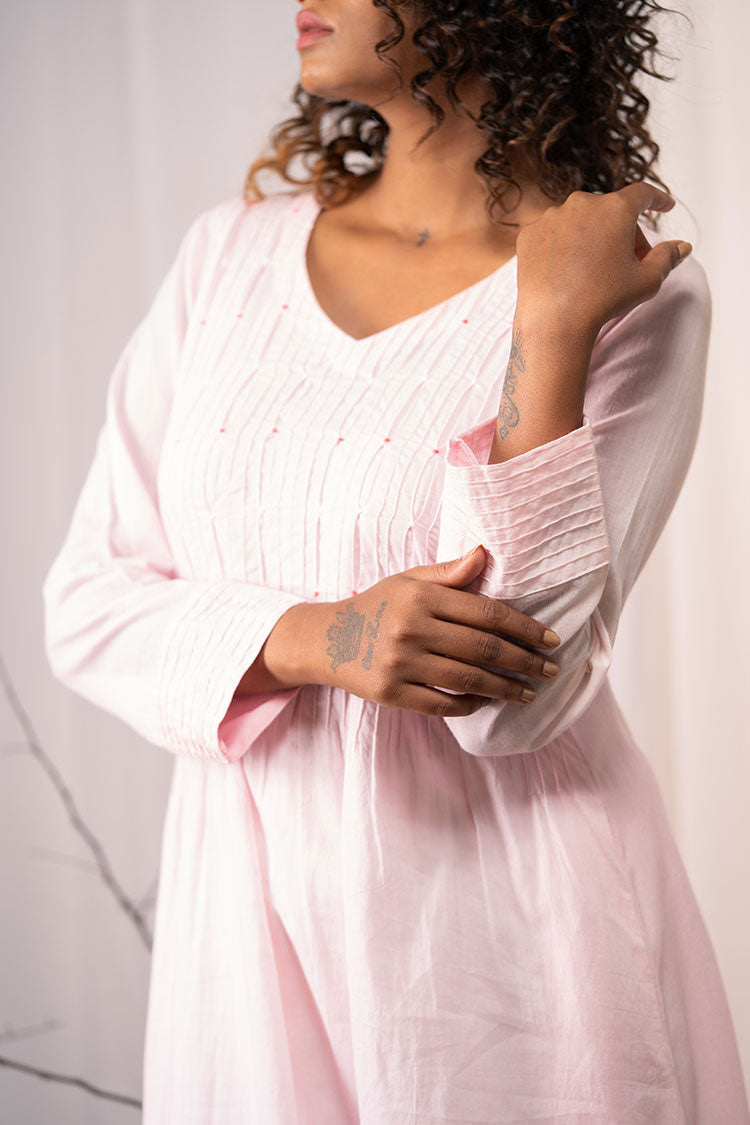 'BLUSHING BEAUTY' Baby Pink Mulmul Cotton Dress