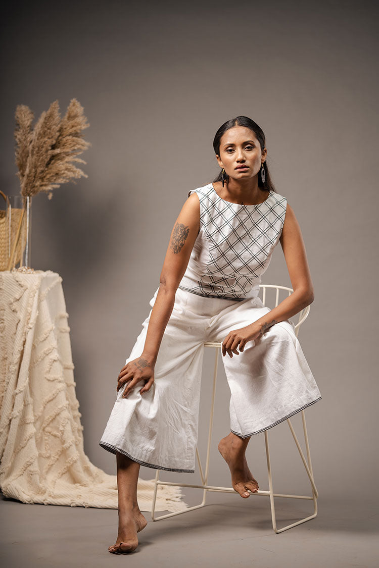 'CHECK MATE' White Handwoven Muslin Cotton Co-ord Set