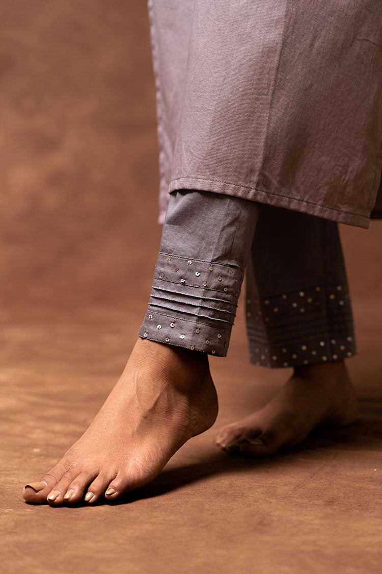 Pants Pants in cotton silk has pleats and sequin work detailing.