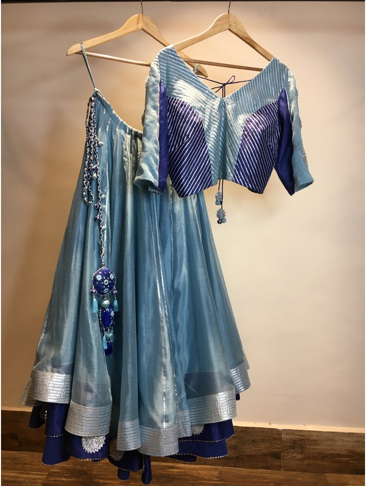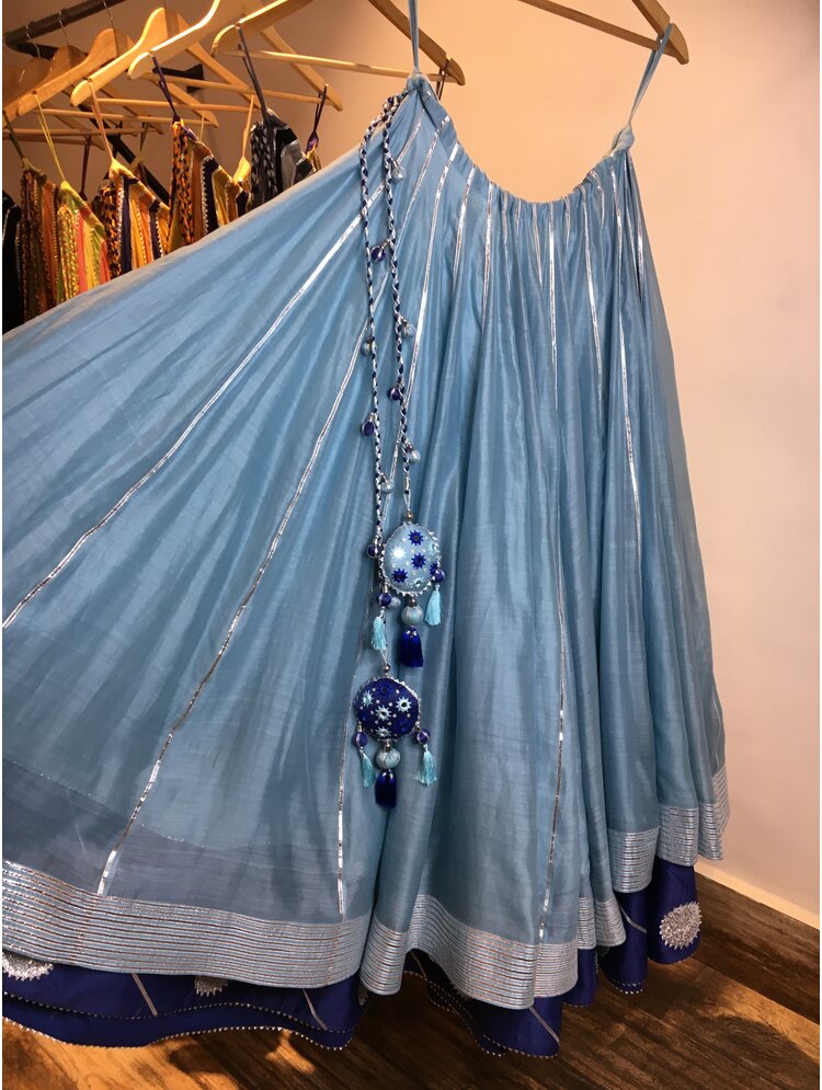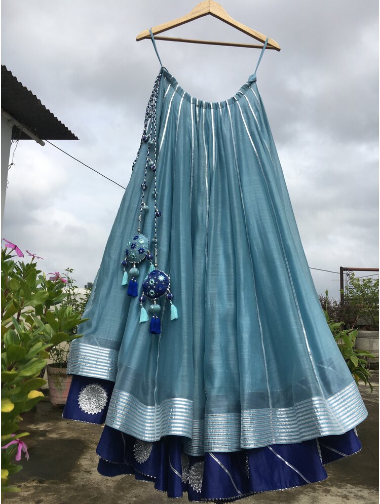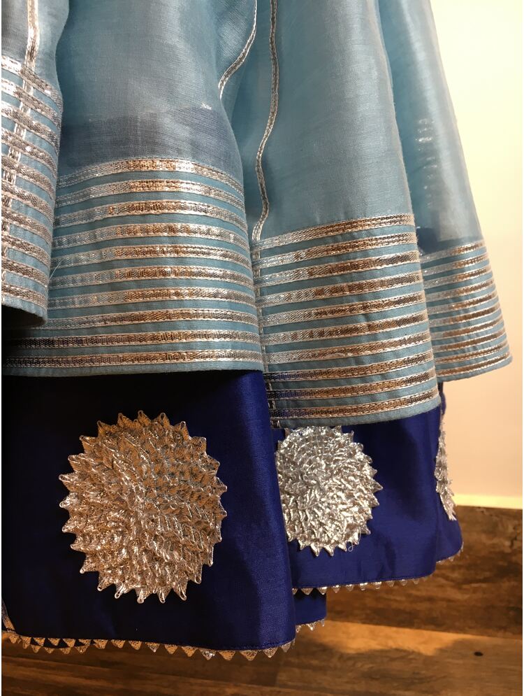 'DARIYA' Blue Double Layered Handloom Chanderi Silk Kalidar Ghaghra (Set Of 3)