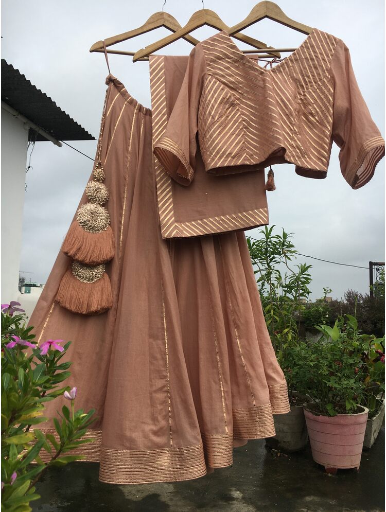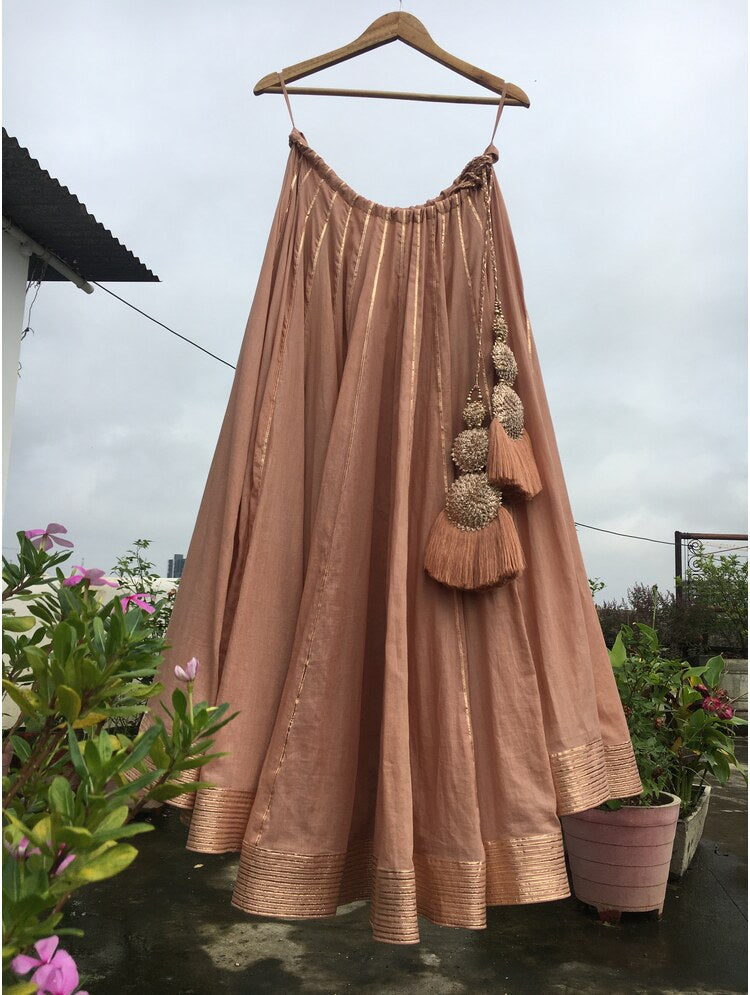 'DILSHAAD' Peach Mulmul Cotton Kalidar Ghaghra (Set Of 3)
