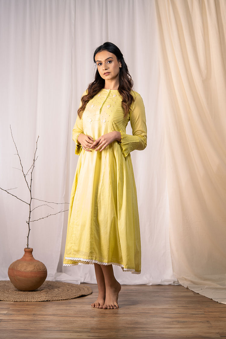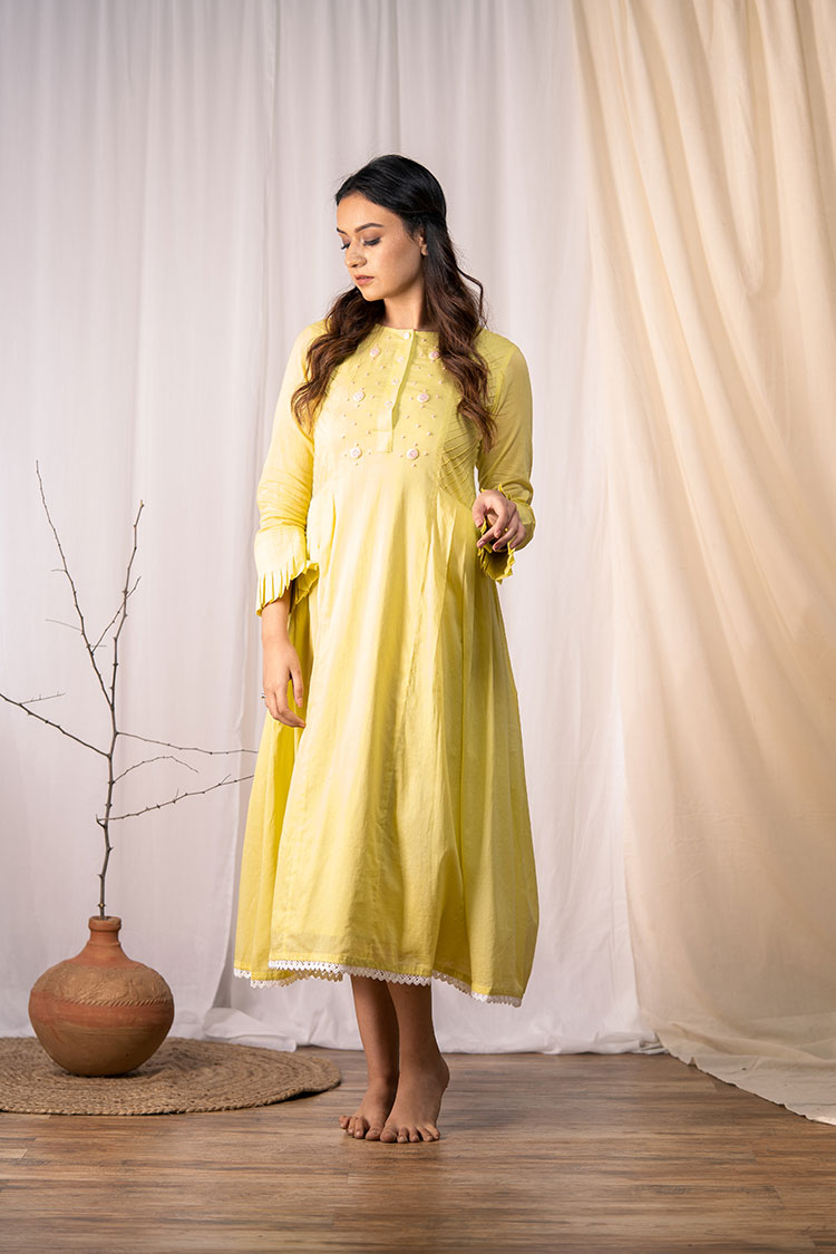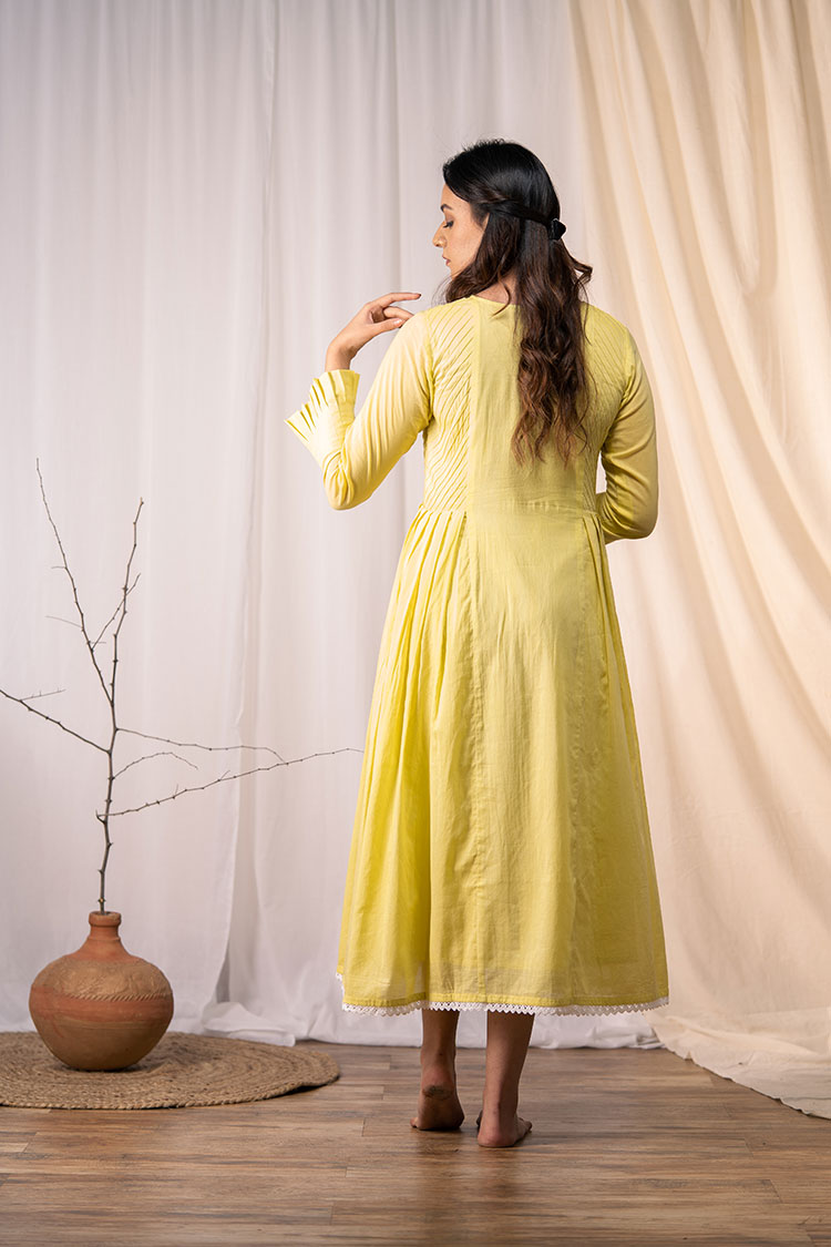 'ETERNAL SUNSHINE' Olive Yellow Mulmul Cotton Dress