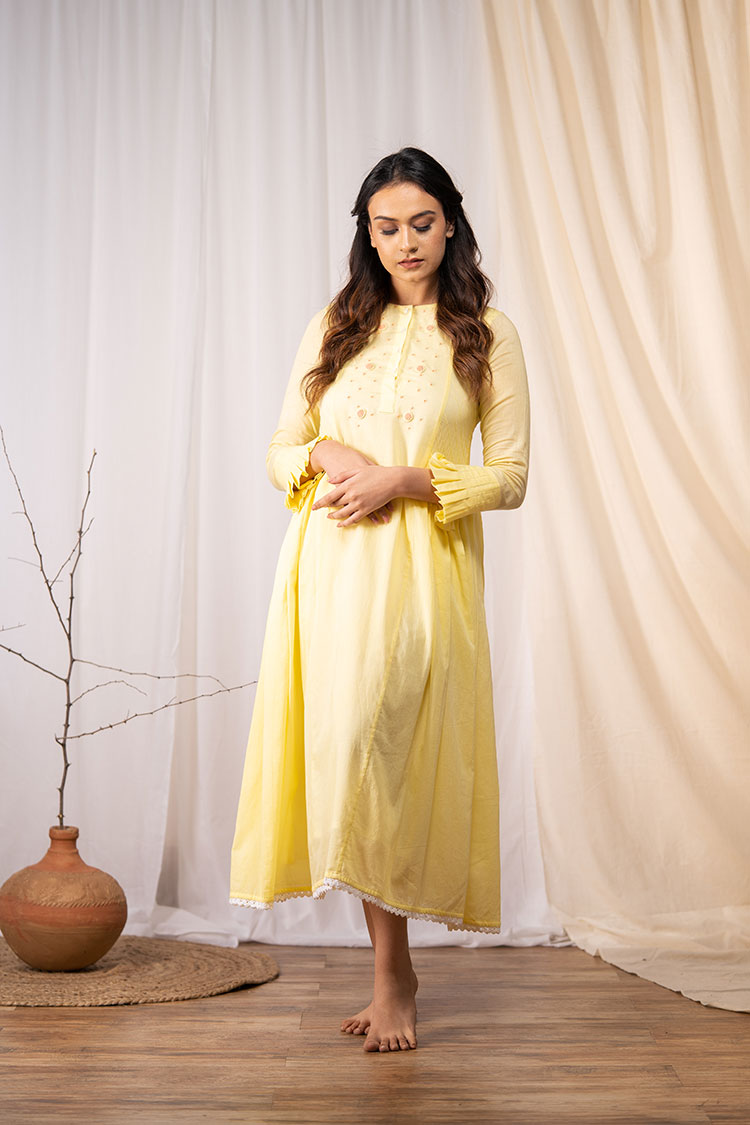 'ETERNAL SUNSHINE' Pastel Yellow Mulmul Cotton Dress