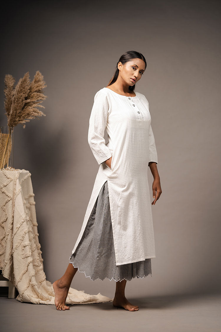 'FINESSE' White Handwoven Cotton Co-ord Set Dress