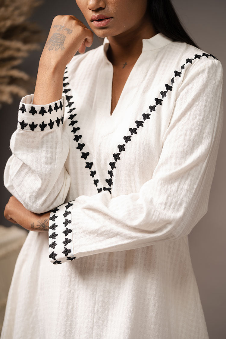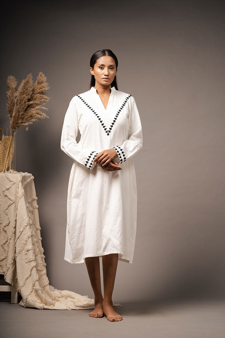 'FLIGHT OF FANCY' White Handwoven Cotton Dress