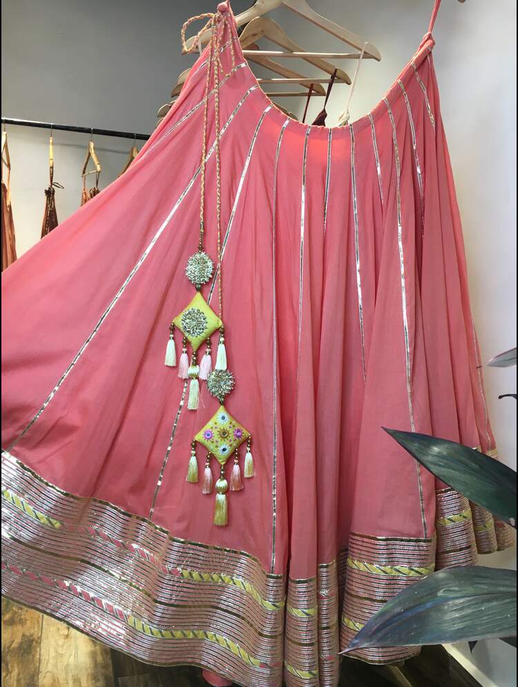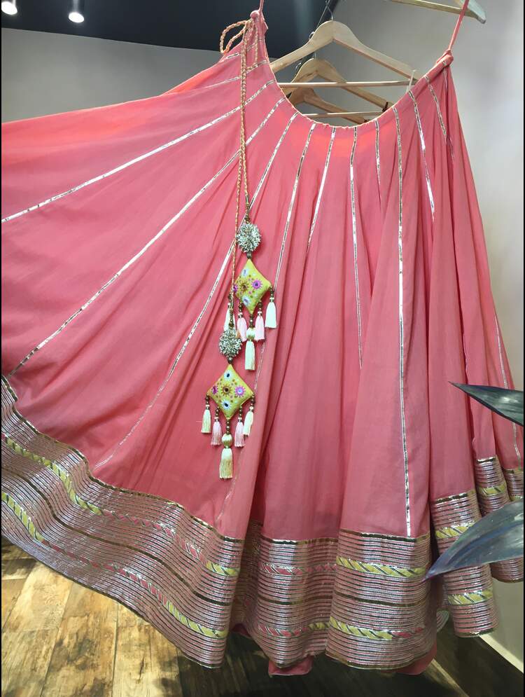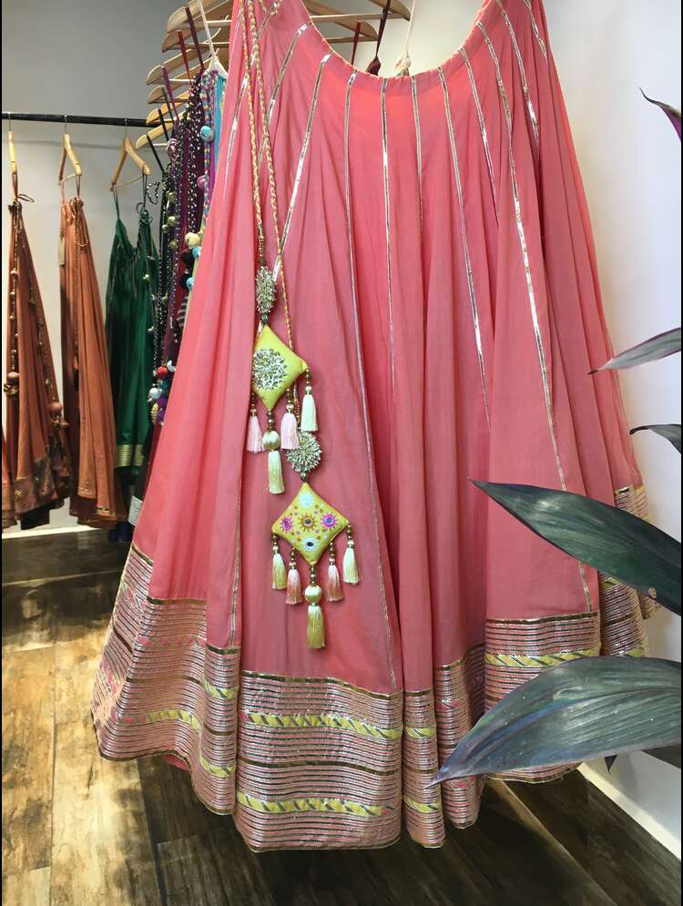 'GULBADAN' Coral Mulmul Cotton Kalidar Ghaghra
