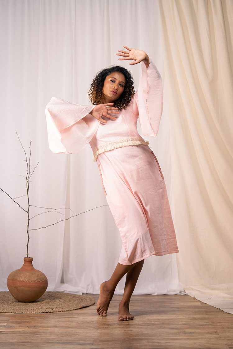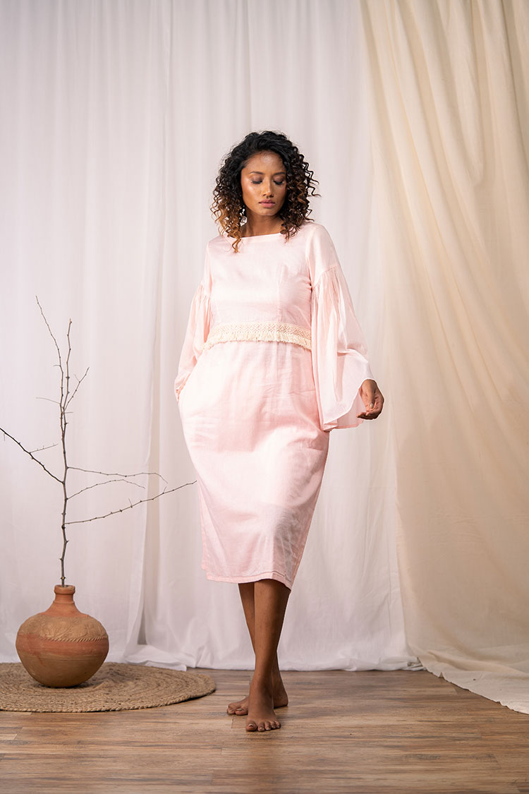 'HAPPY GO LUCKY' Blush Pink Mulmul Cotton Dress