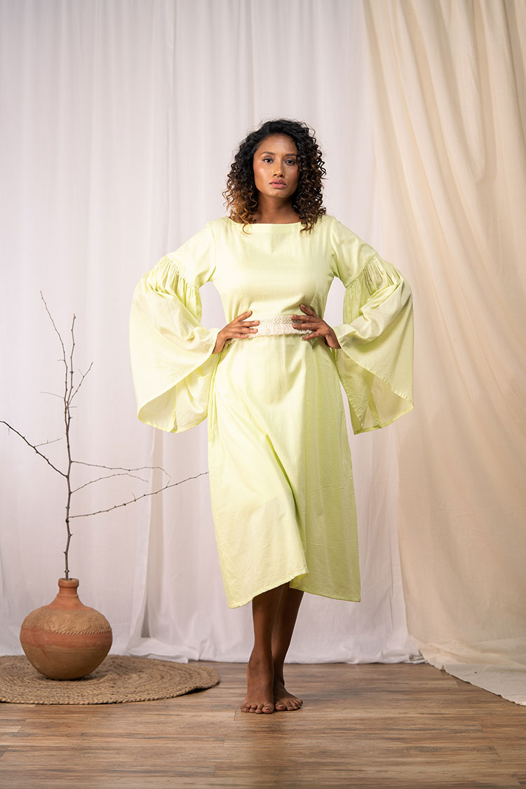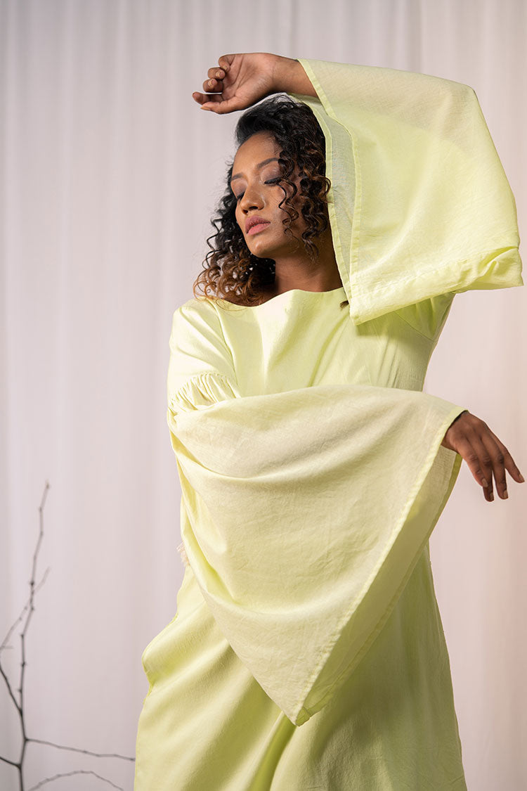 'HAPPY GO LUCKY' Lime Green Mulmul Cotton Dress