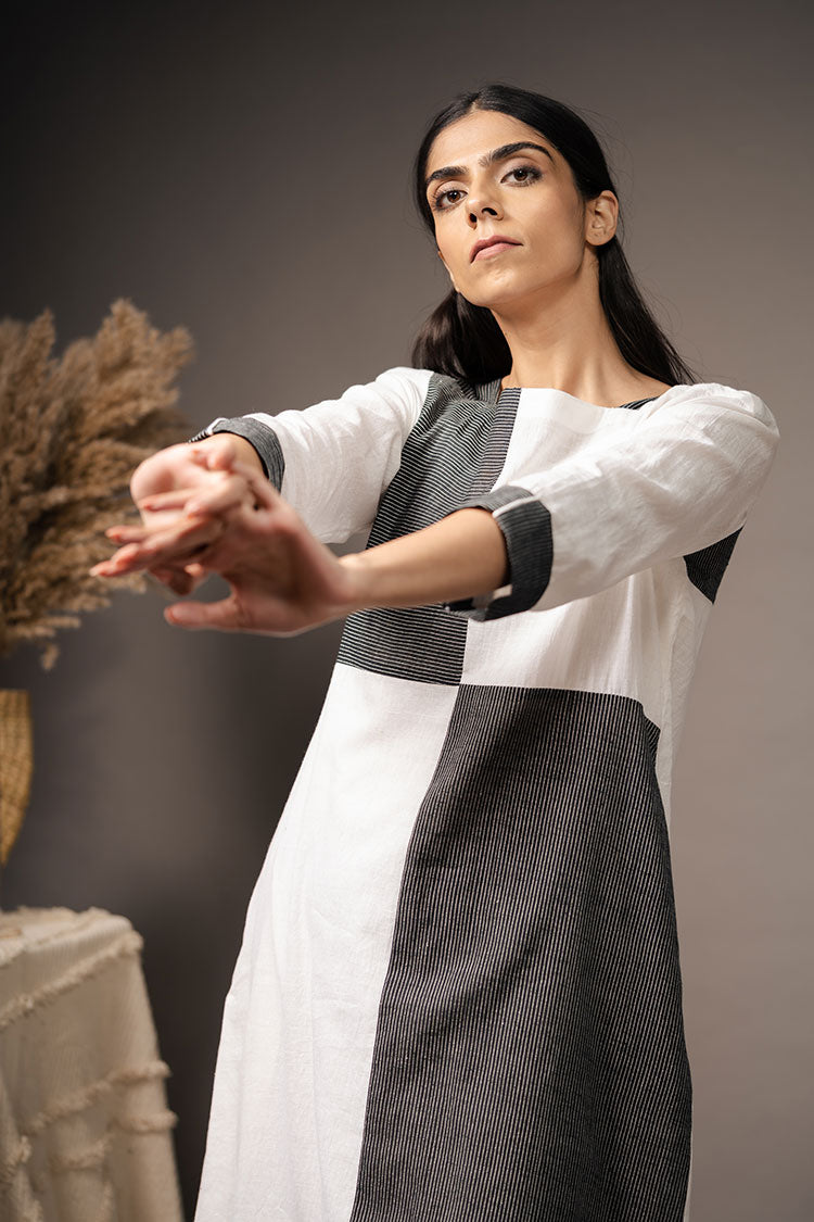 'HIERARCHY' Black And White Handwoven Cotton Dress