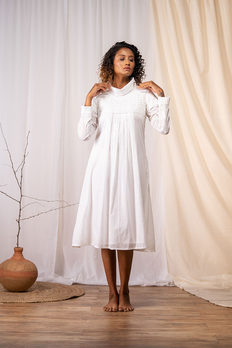 'HOMOGENEOUS' Off White Mulmul Cotton Dress