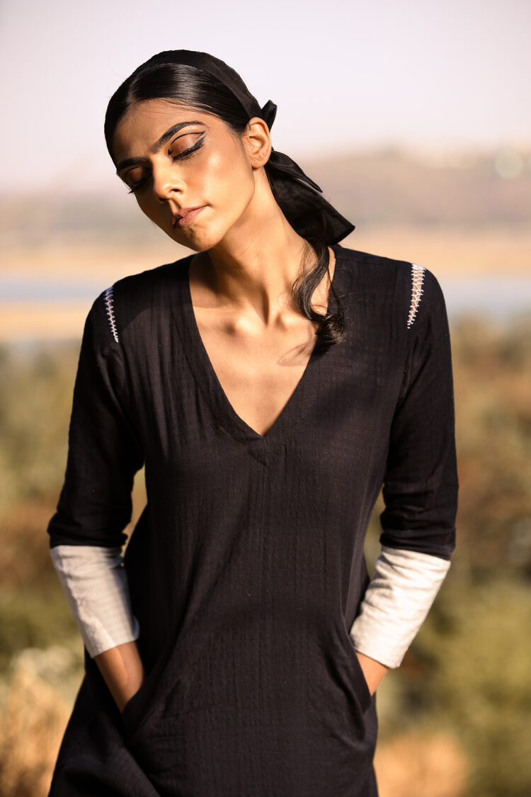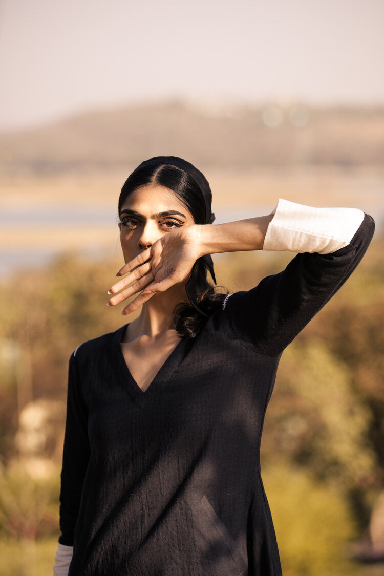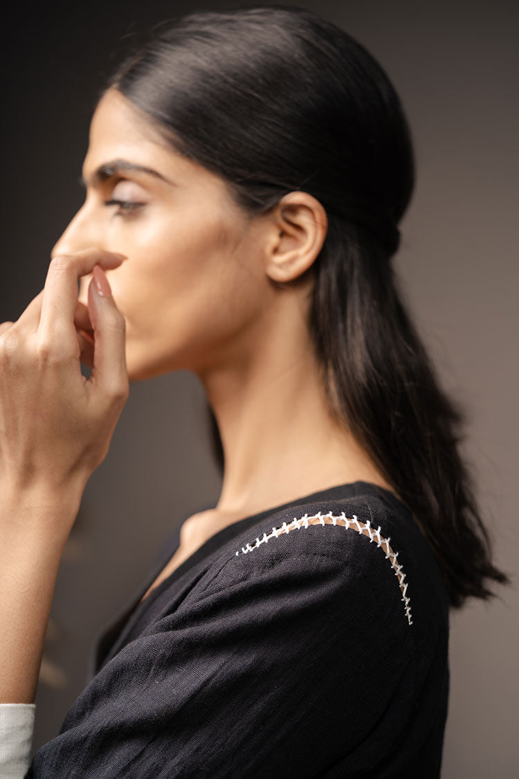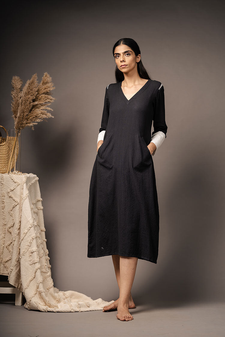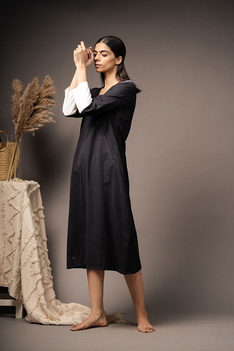 'ILLUSION' Black Handwoven Cotton Dress