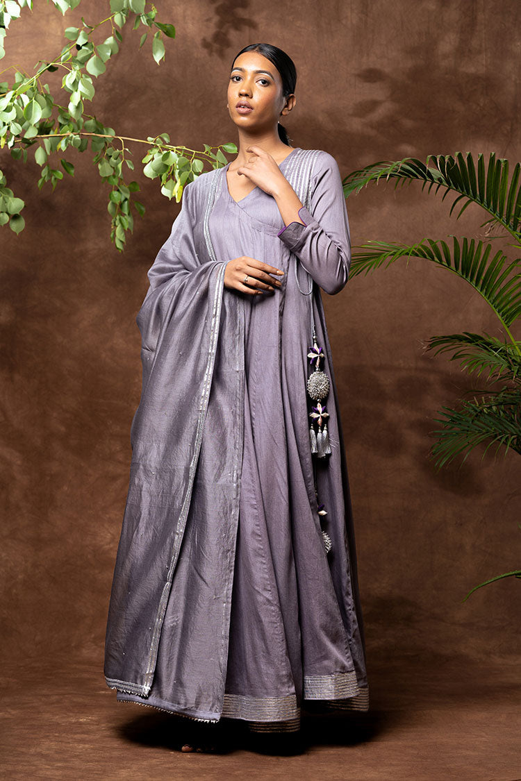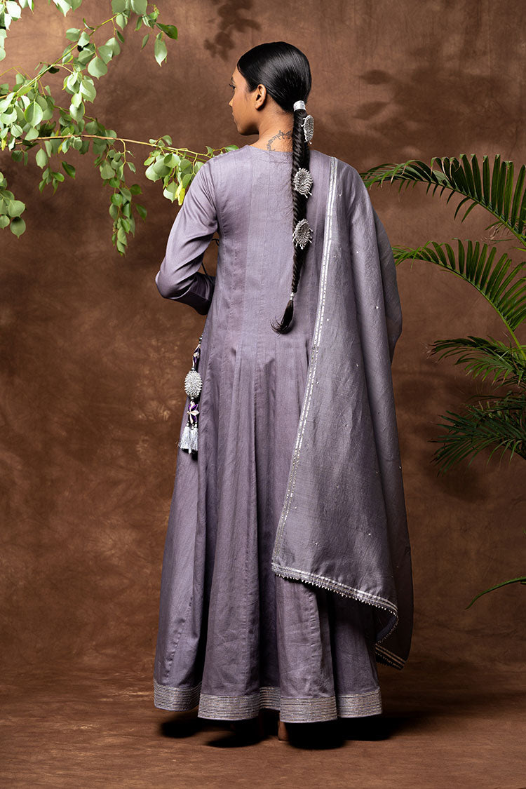 'JASMINE' Cotton Silk Hand Embroidered Anarkali Kurta & Dupatta Set