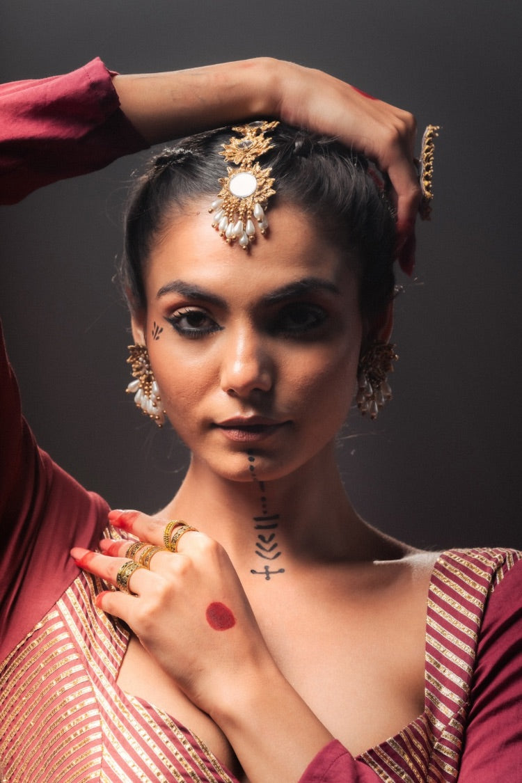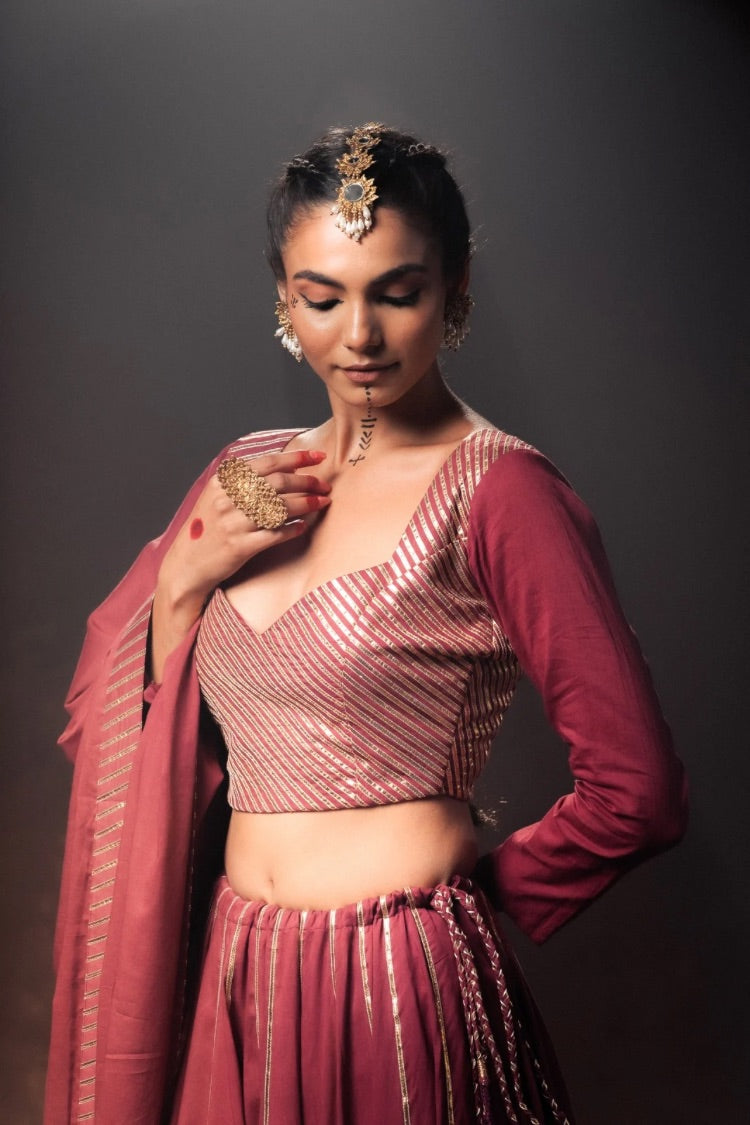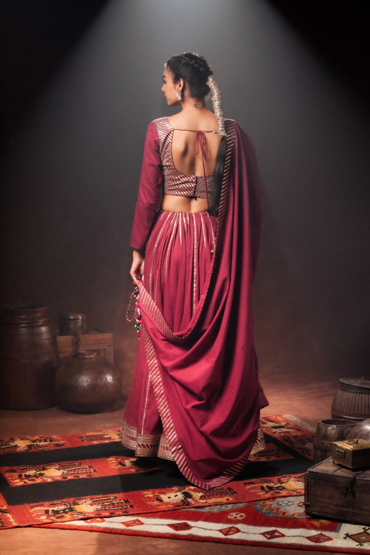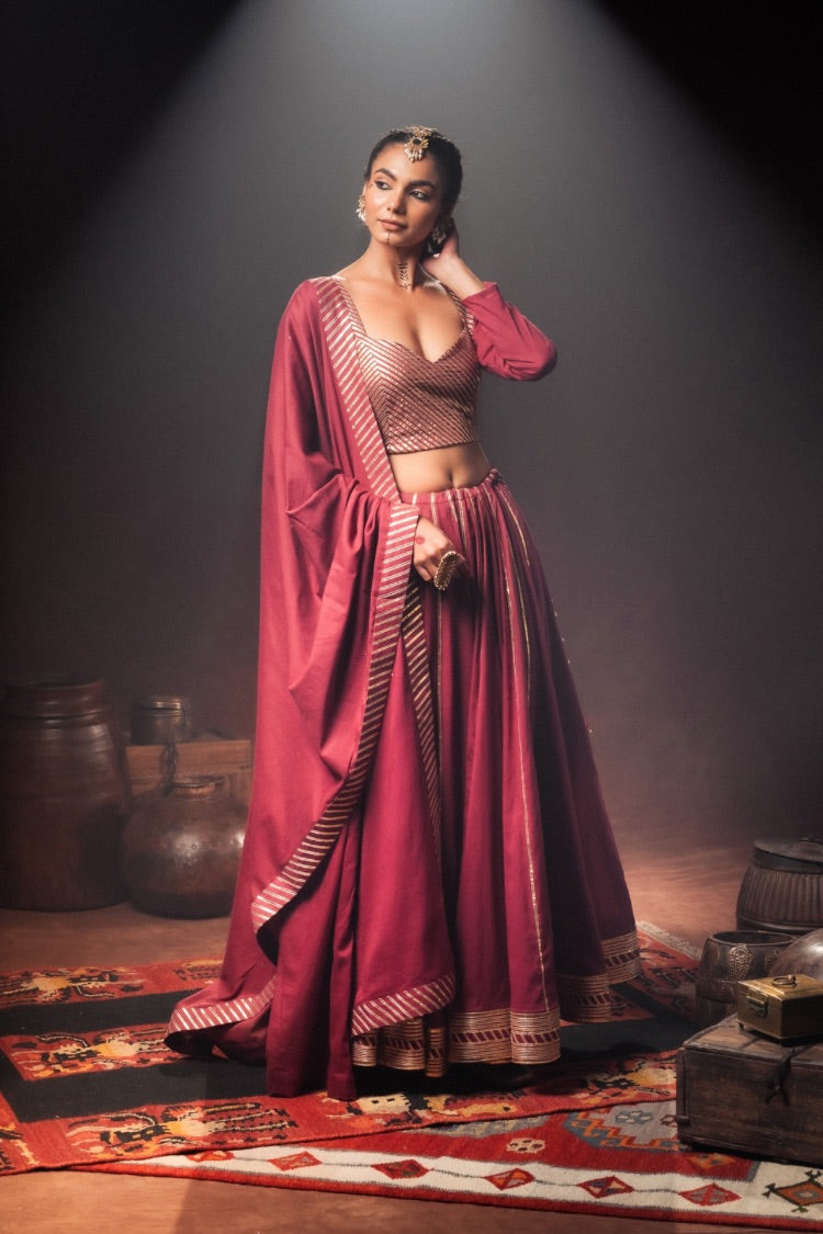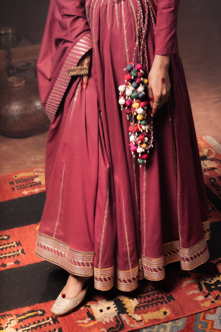 'KOMOLIKA' Maroon Mulmul Cotton Kalidar Ghaghra