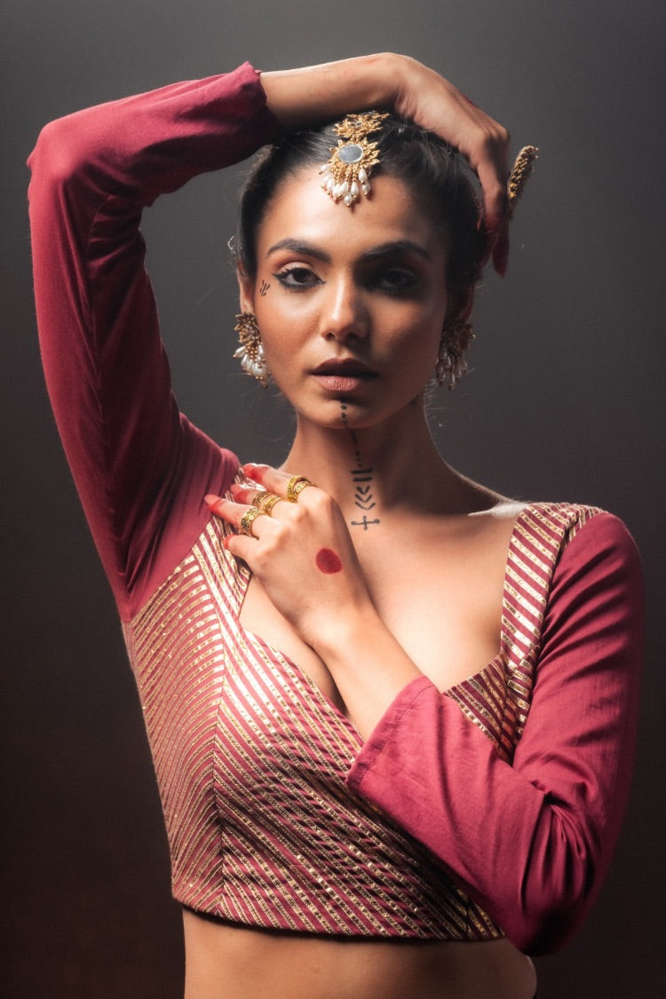 -A cascade of kalis, each touched with timeless gota work.