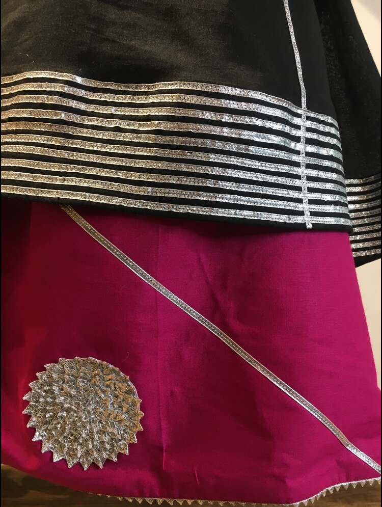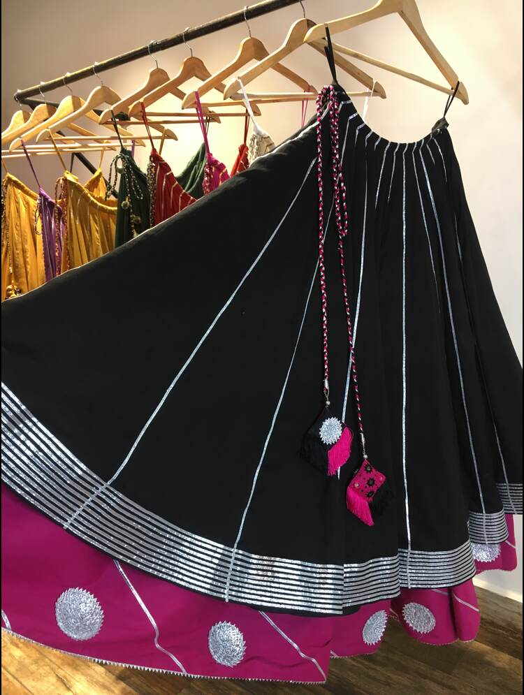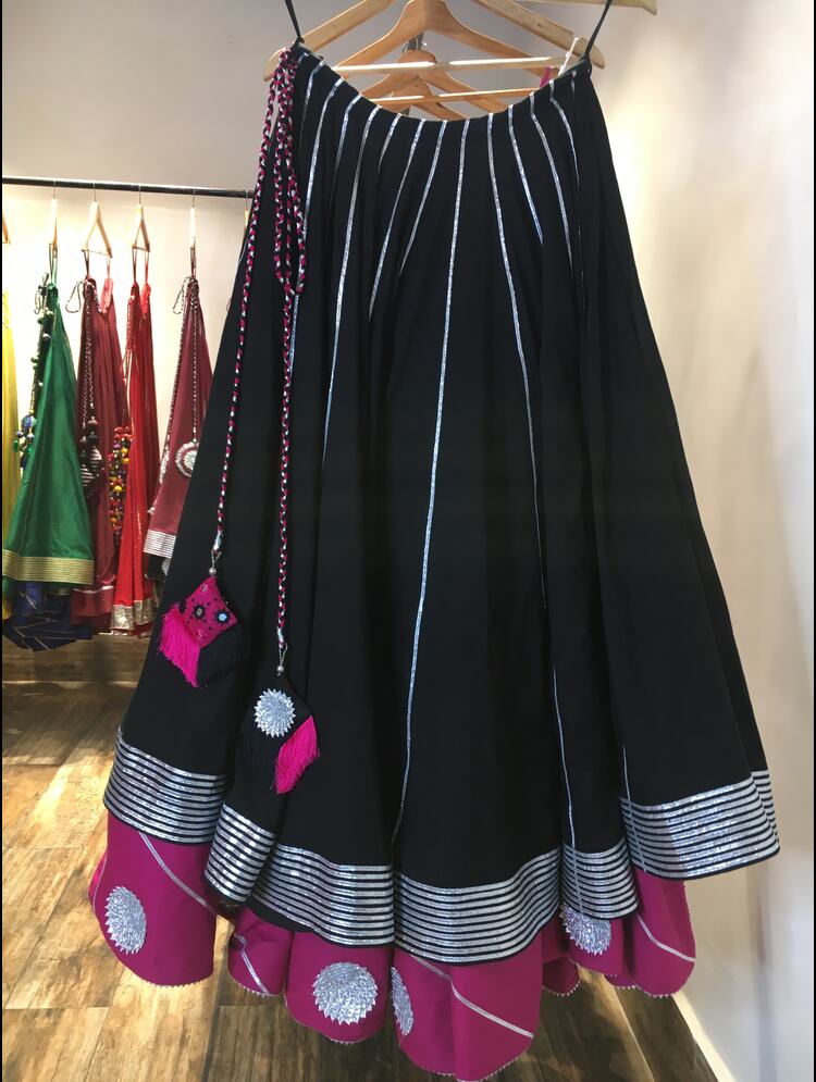 'MADHUBALA' Black And Pink Double Layered Mulmul Cotton Kalidar Ghaghra