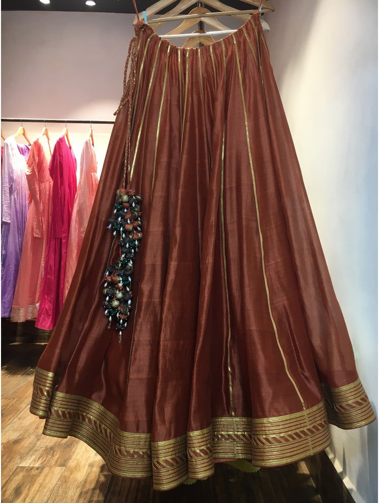'MAHIRA' Rust Handloom Chanderi Silk Kalidar Ghaghra