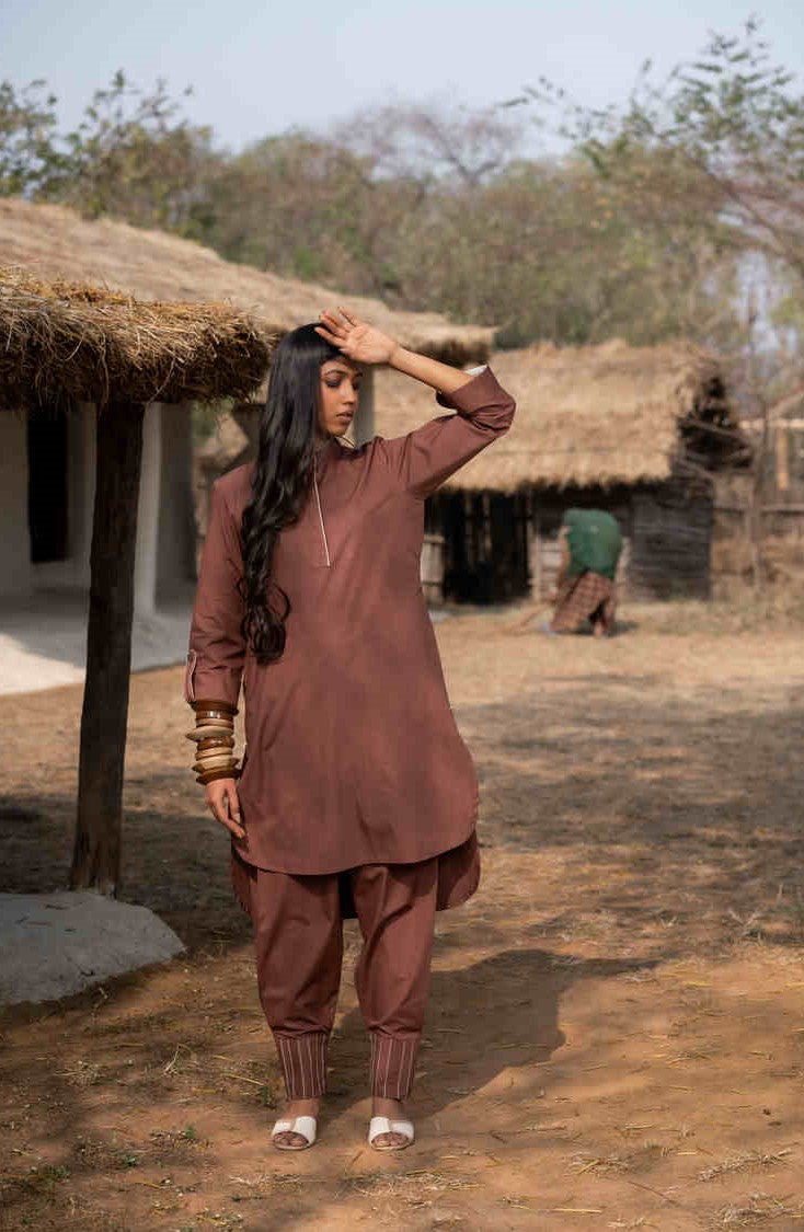The 'MARDANI' High-Low Co-ord sets the stage with its bold design and a touch of drama on the back. The sleeves come with cuffs and loops, while the pants sport a stylish broad cuff at the hem, making it a powerhouse ensemble.