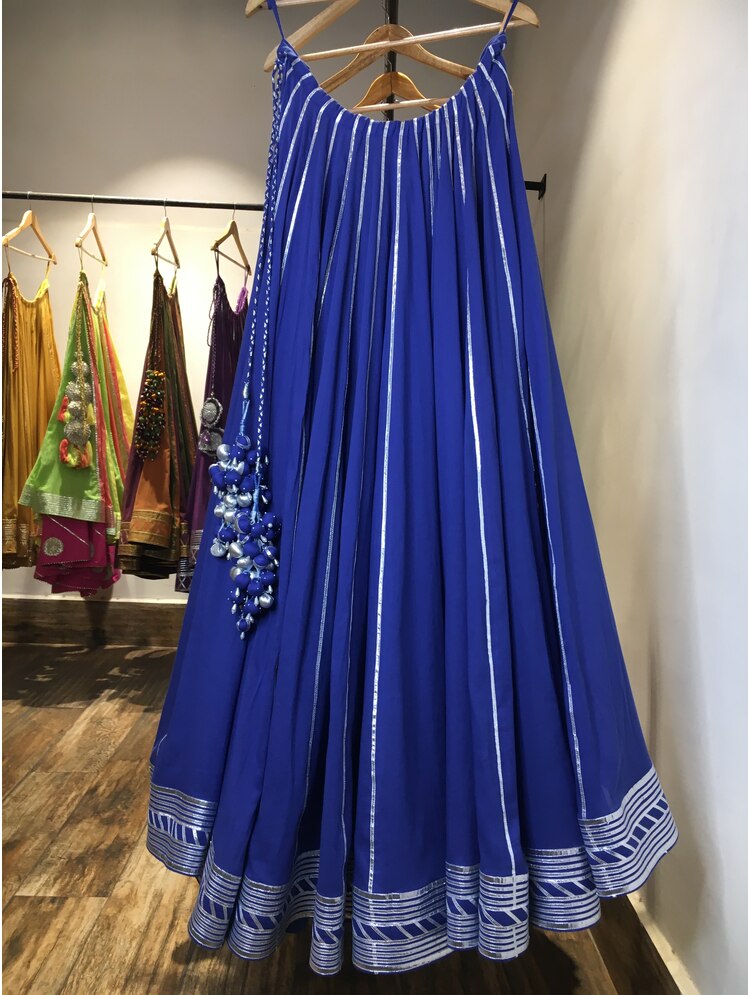 'NILAYA' Blue Mulmul Cotton Kalidar Ghaghra