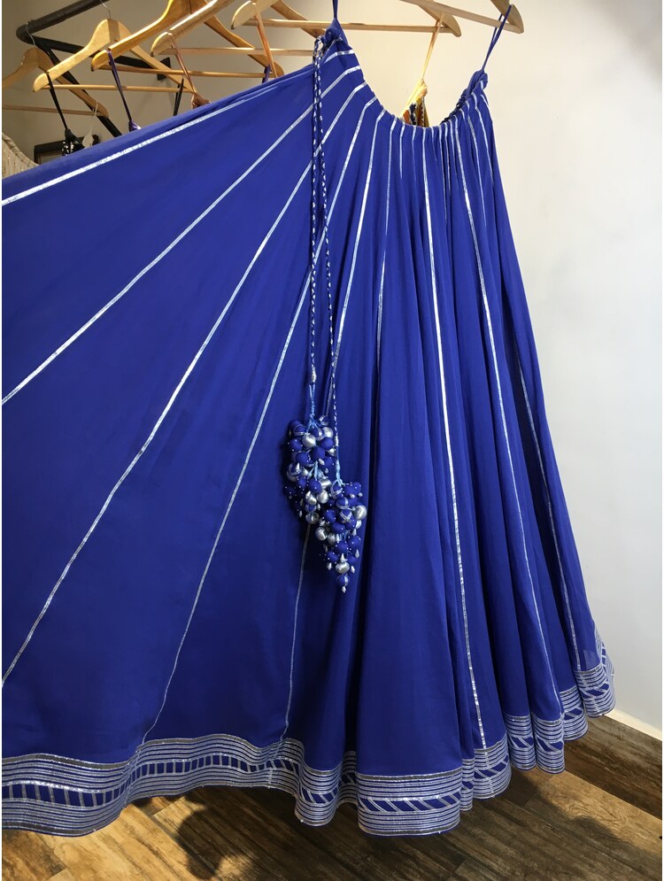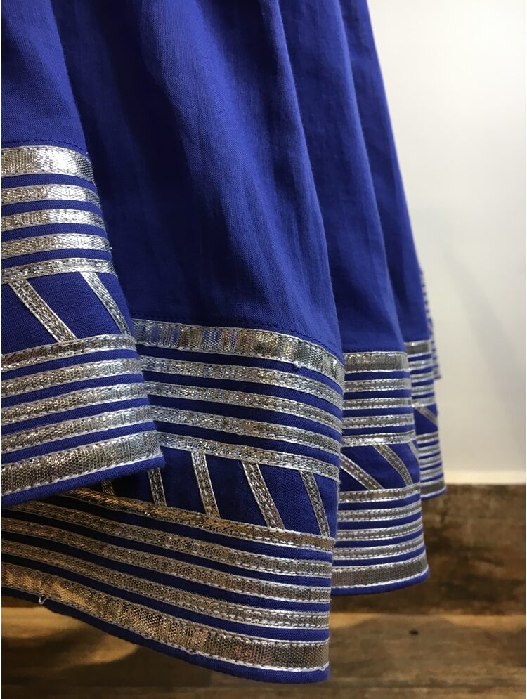 'NILAYA' Blue Mulmul Cotton Kalidar Ghaghra (Set Of 3)
