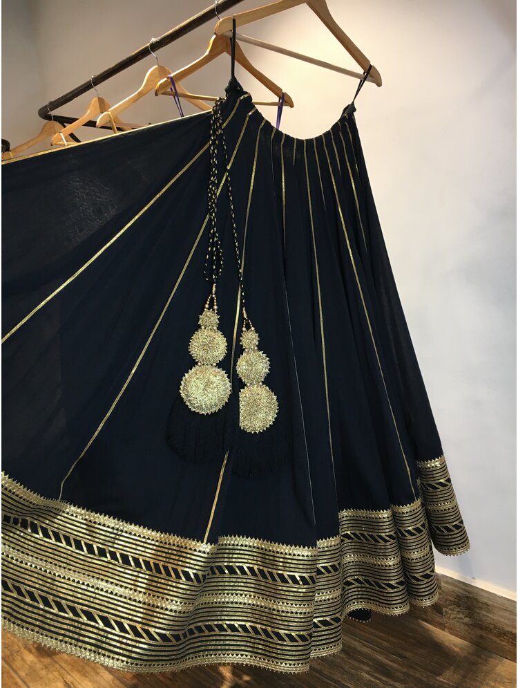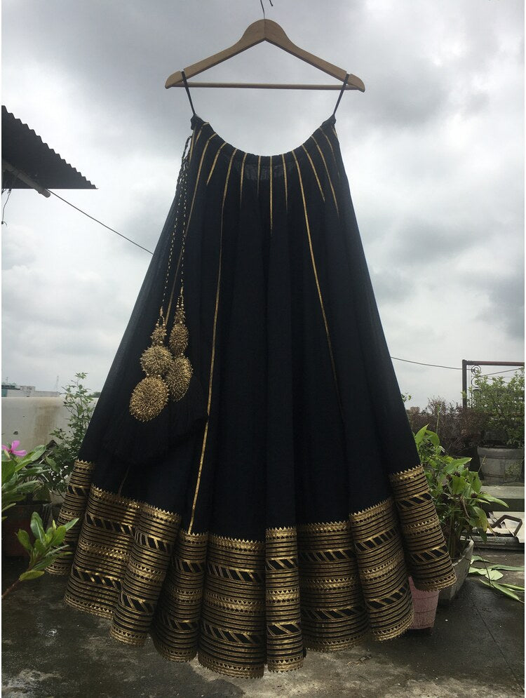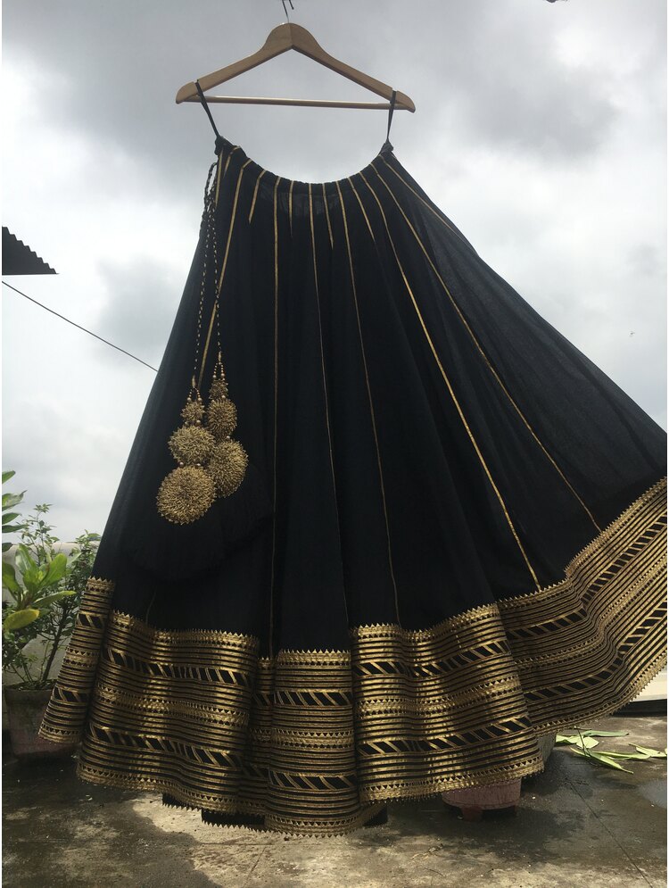'NOORJAHAN' Black Mulmul Cotton Kalidar Ghaghra