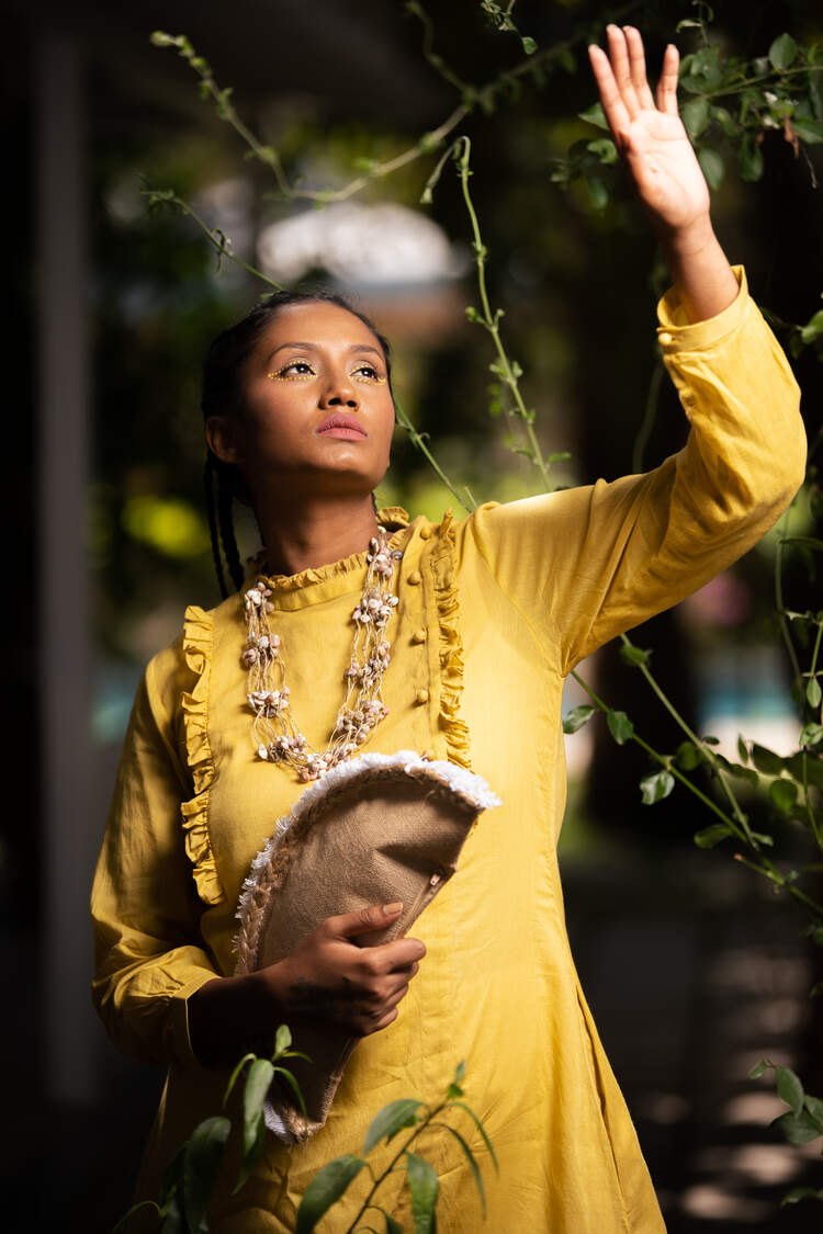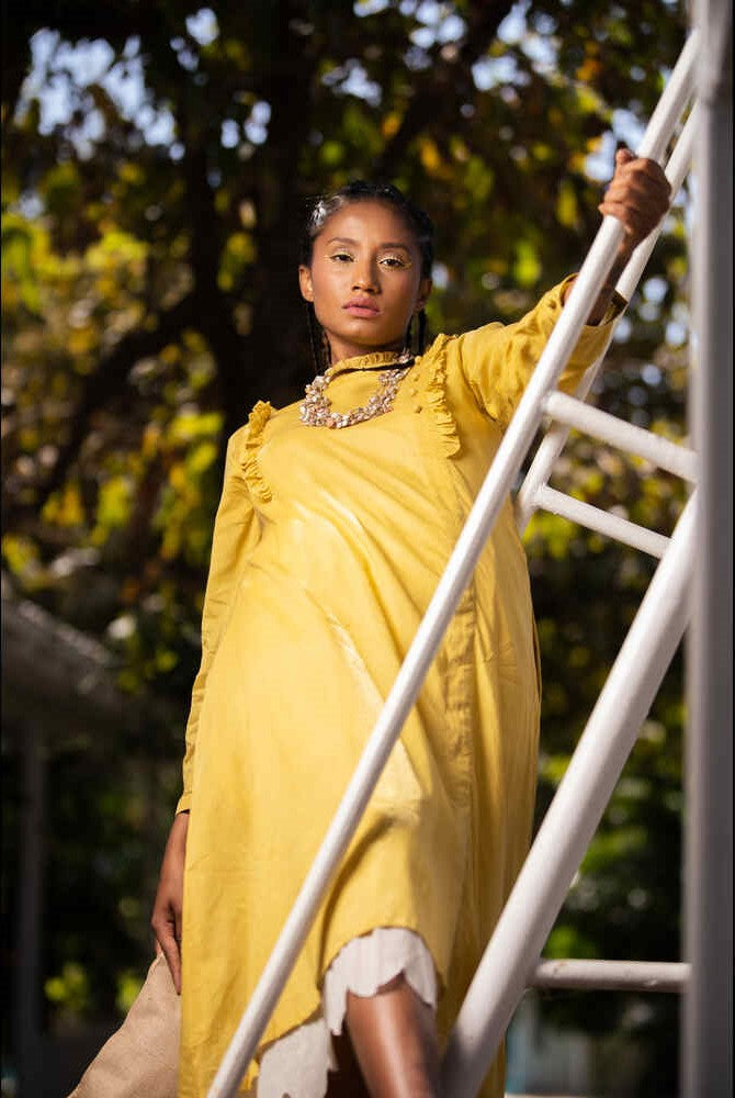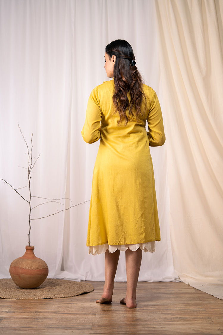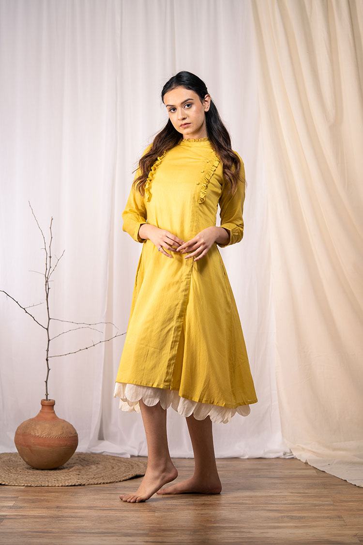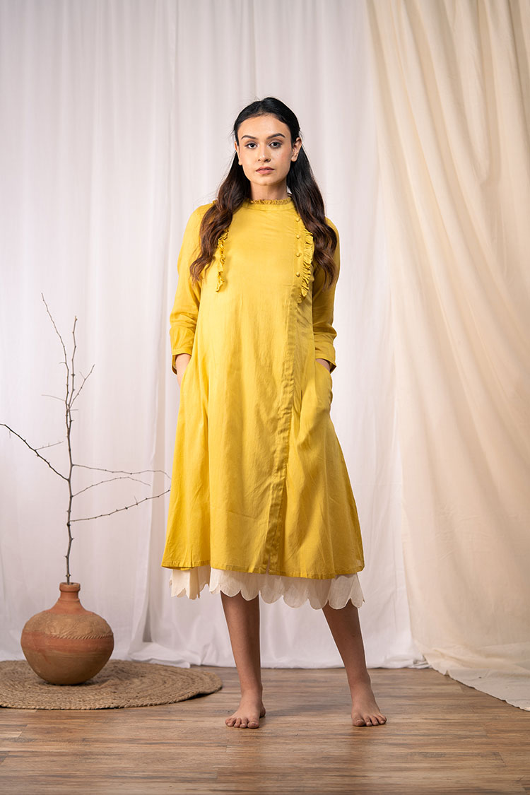 'OCEAN PEARL' Mustard Mulmul Cotton Dress