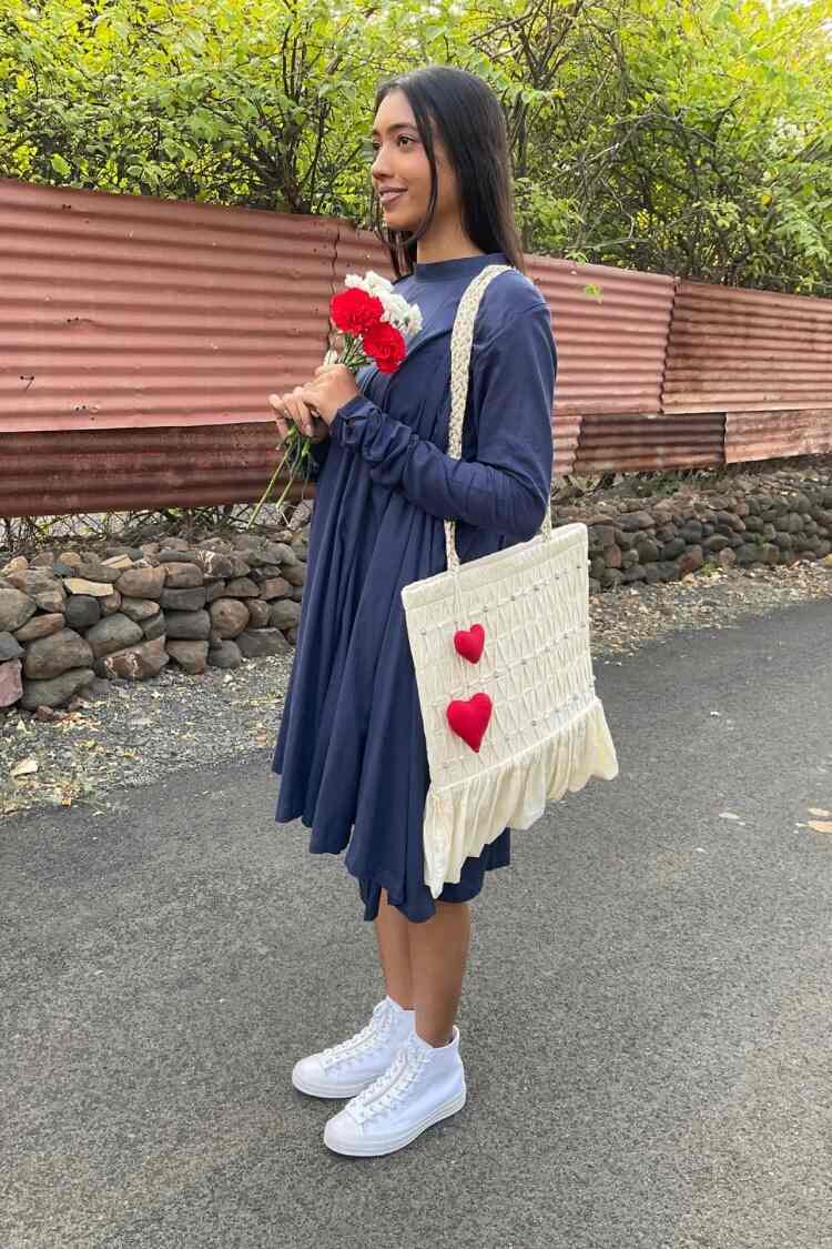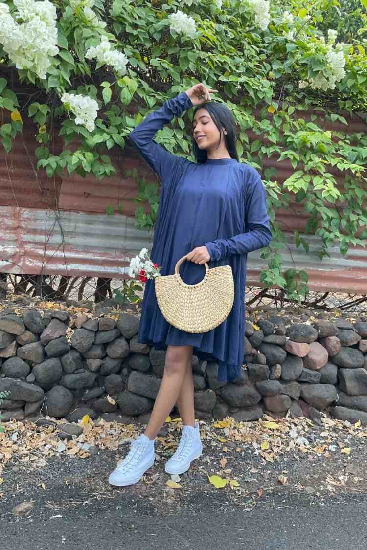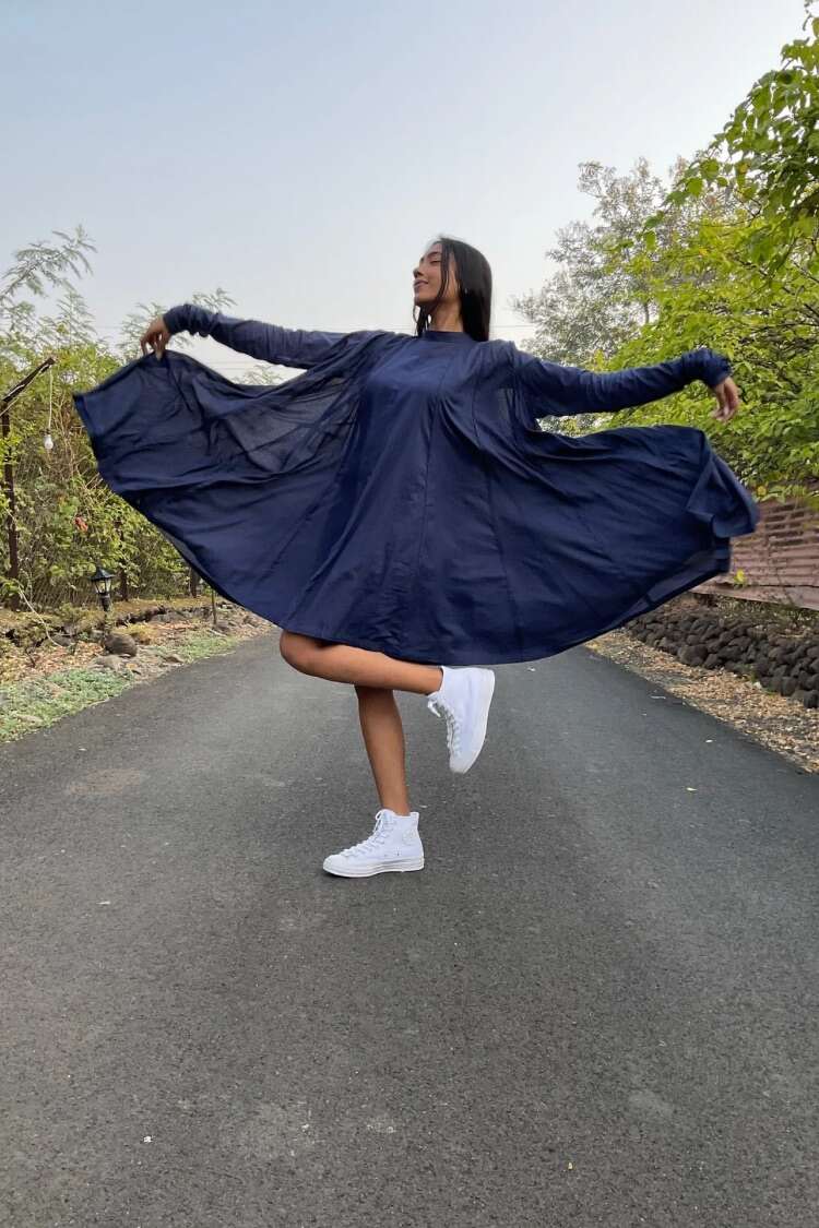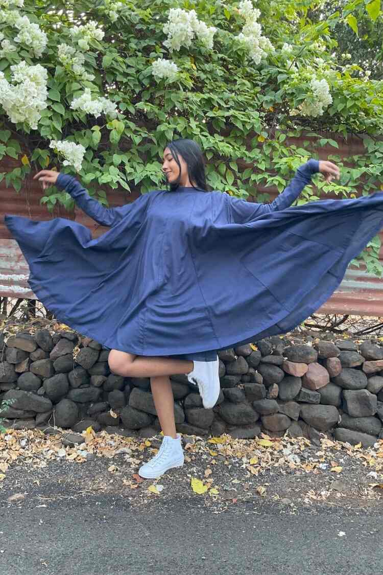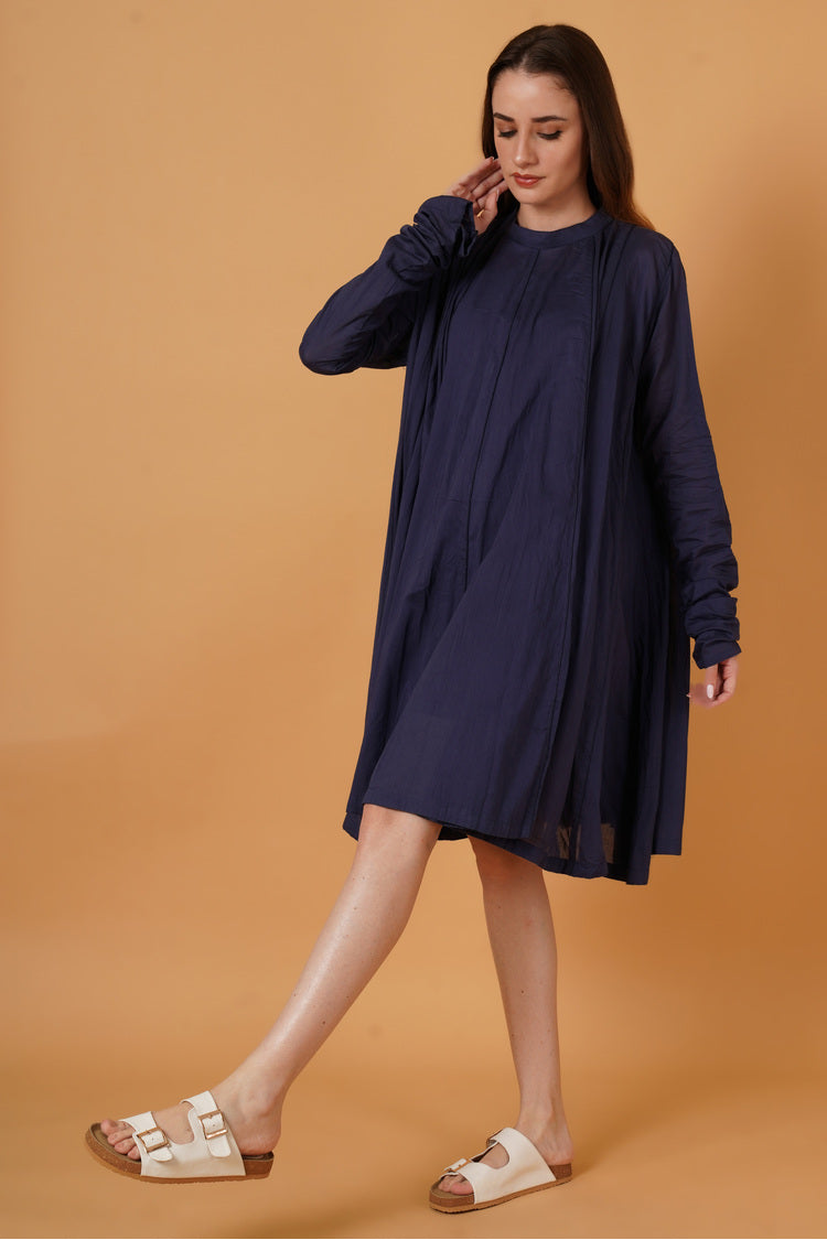 'PARINDA' Navy Blue Cotton Mulmul Dress