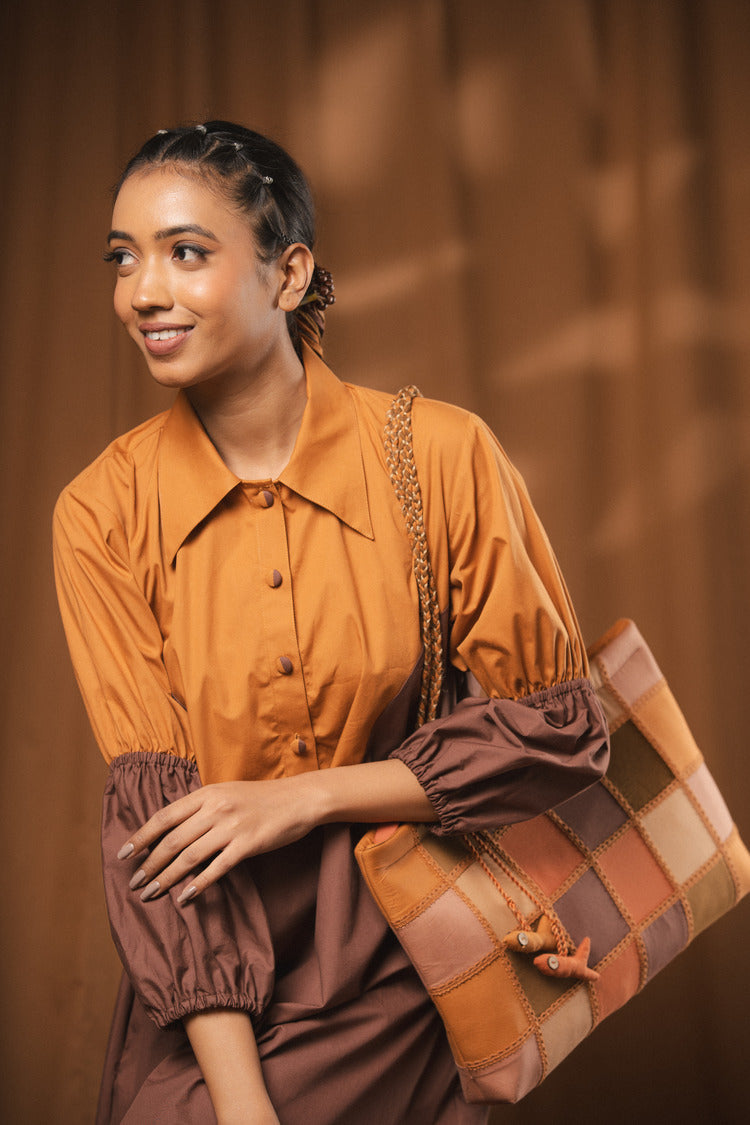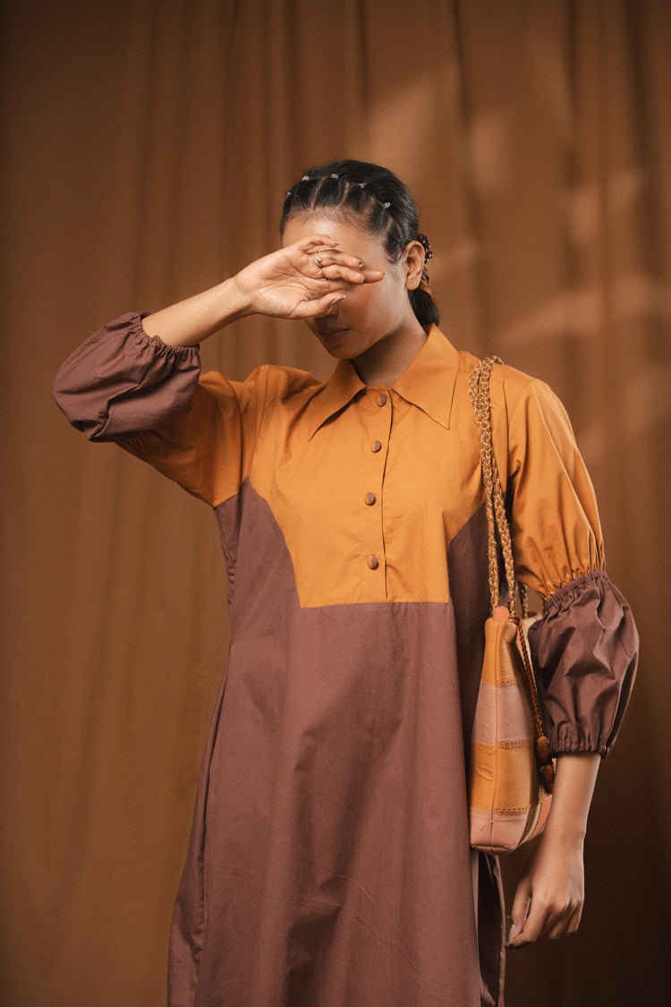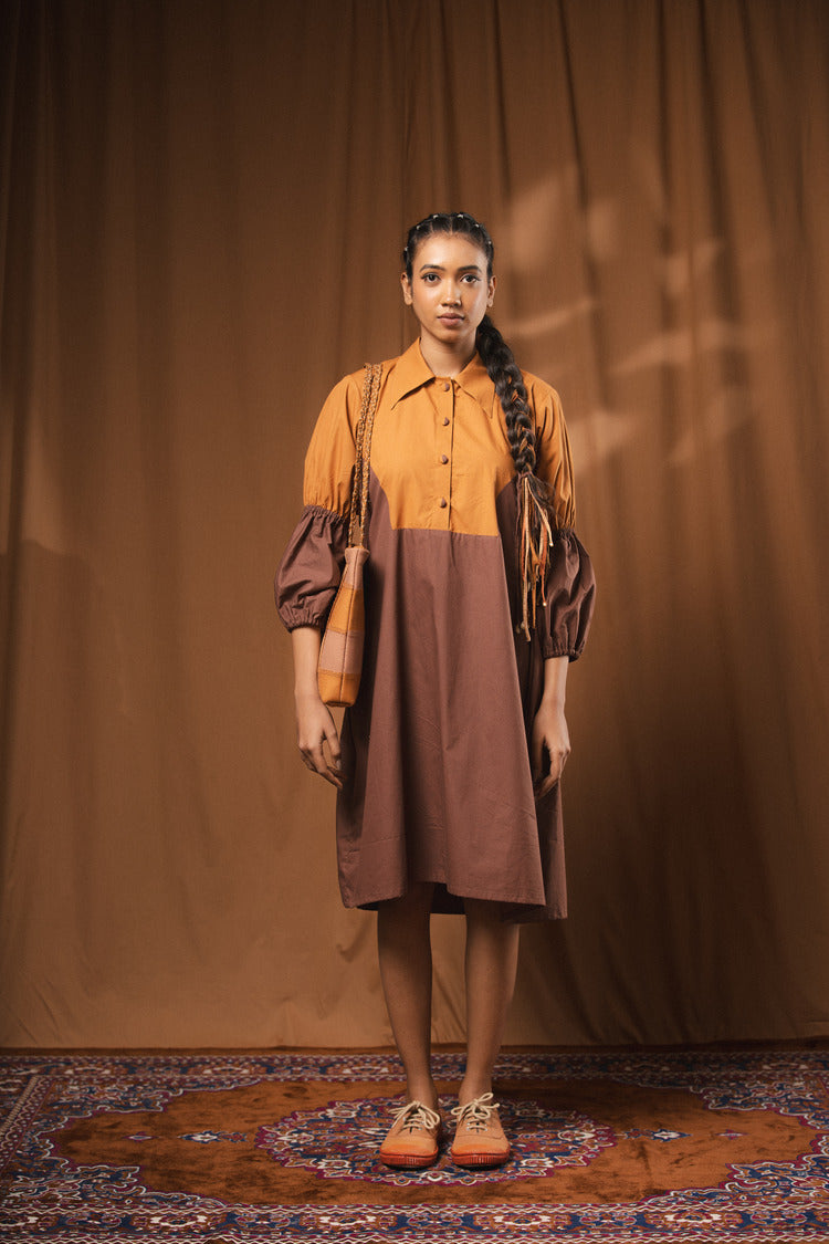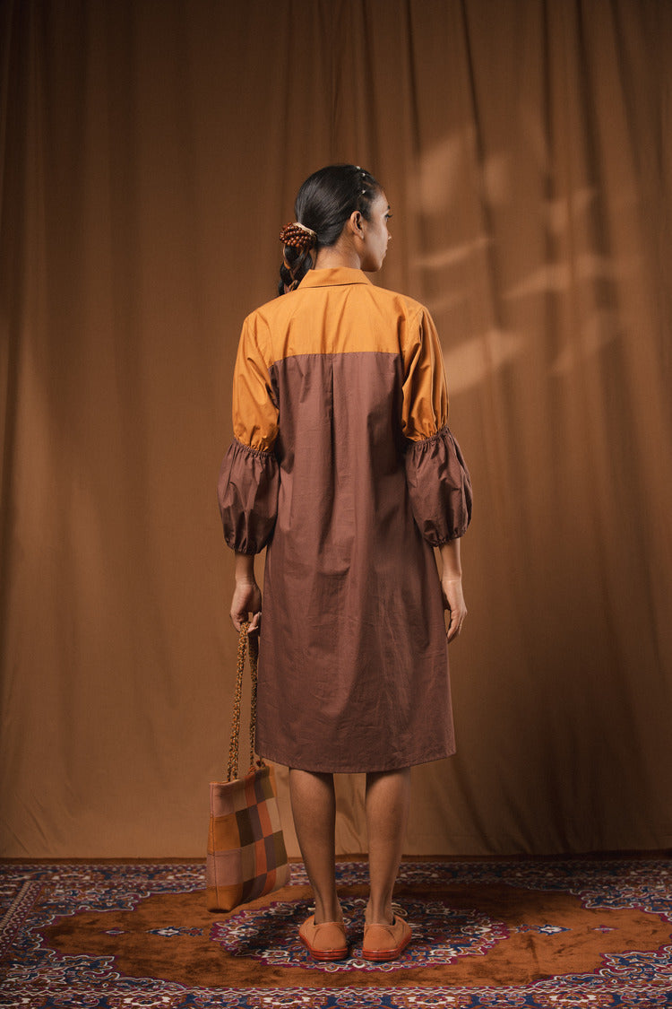 Elevate your style effortlessly with bold color blocking and minimalist details on this cotton poplin shirt dress. Enjoy all-day comfort and versatility, making it a perfect wardrobe staple for running errands or day-to-day activities.