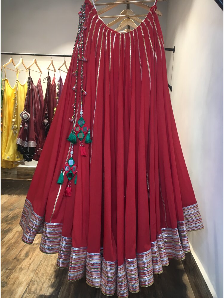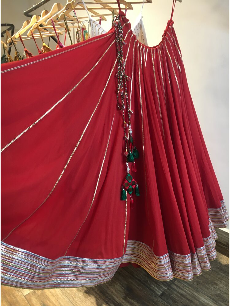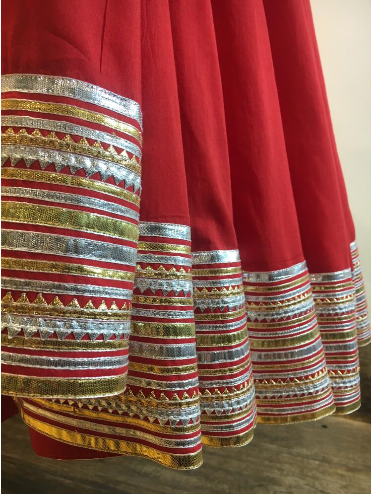 'RANGTAARA' Red Mulmul Cotton Kalidar Ghaghra