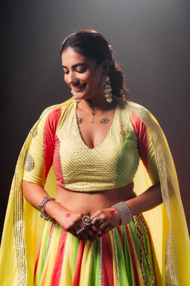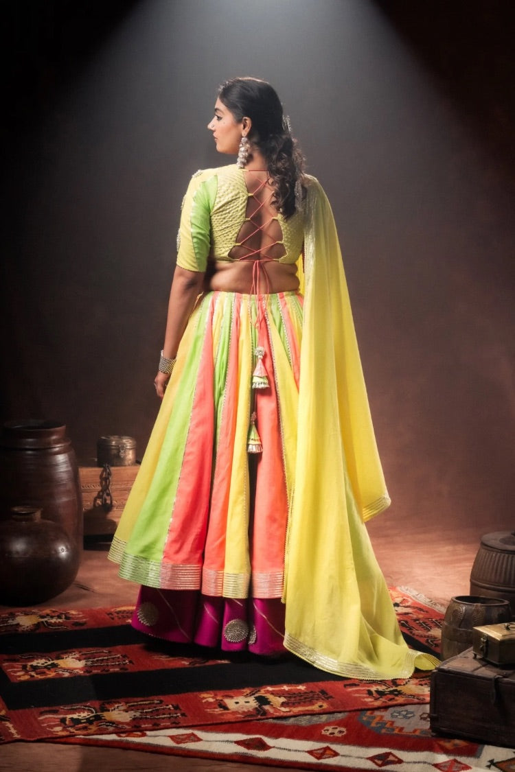 'RASEELI' Multicolor Double Layered Mulmul Cotton Kalidar Ghaghra