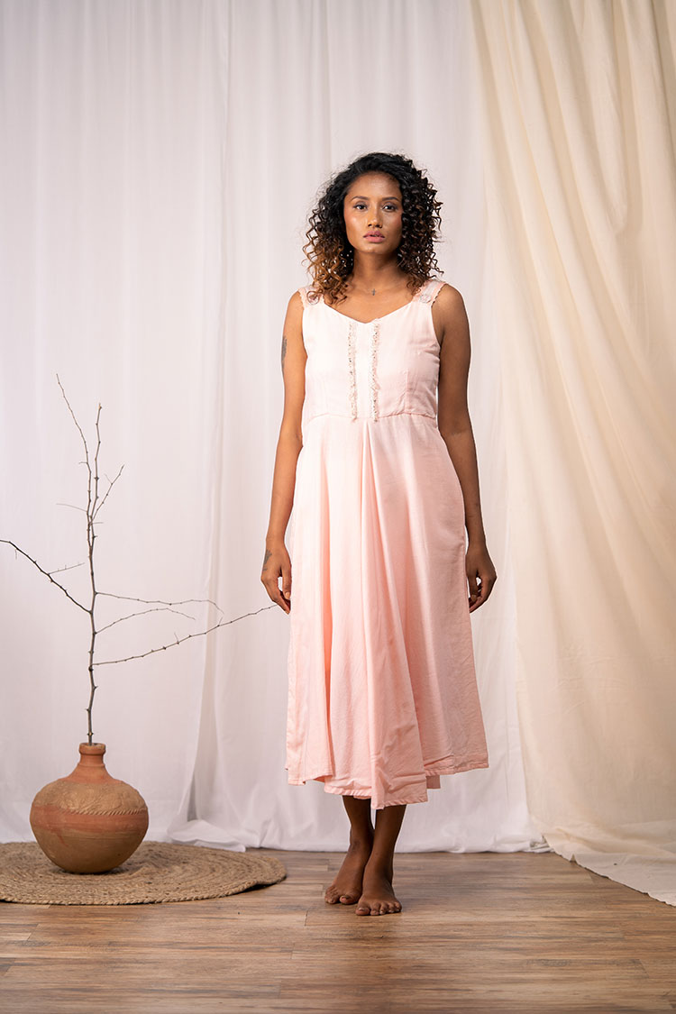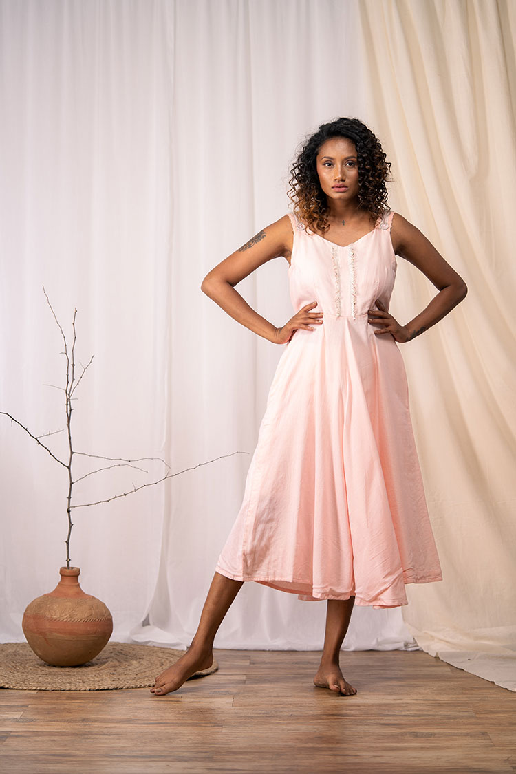 'ROSEMARY' Blush Pink Mulmul Cotton Dress
