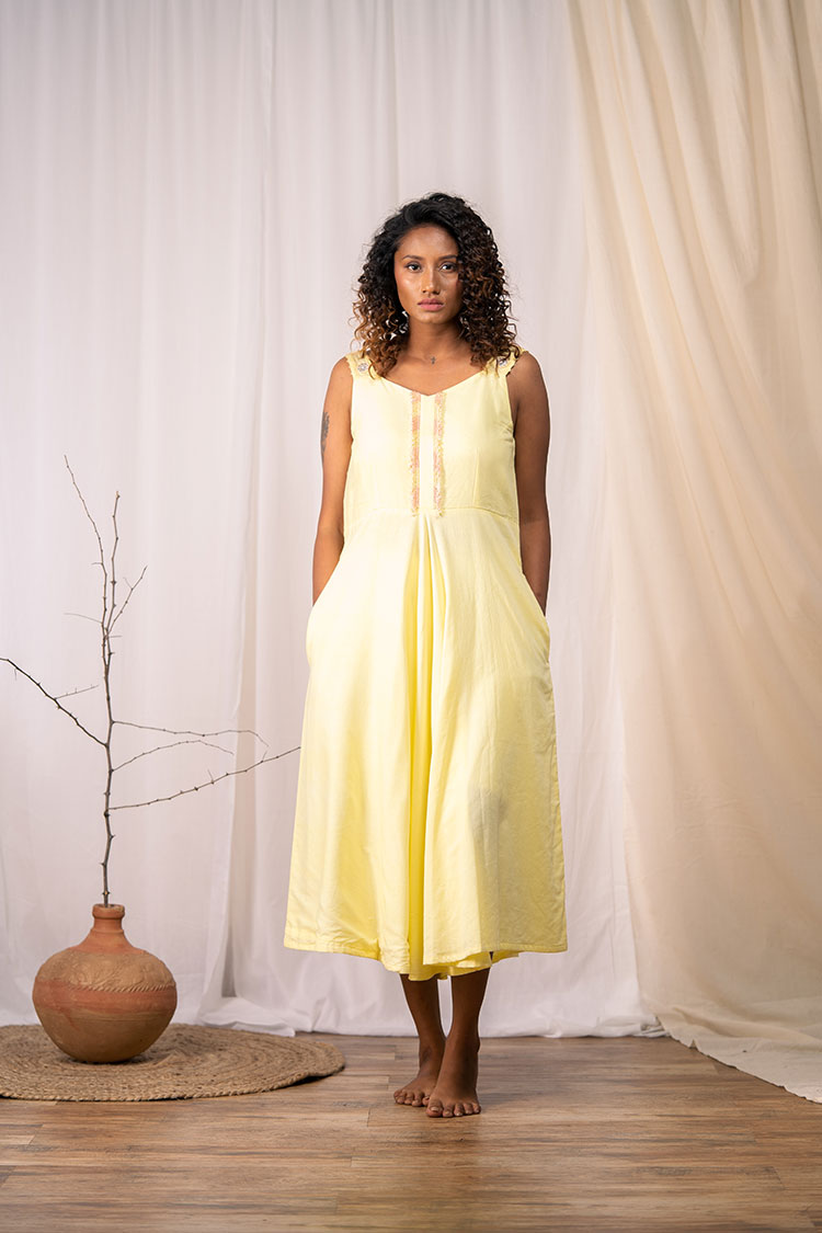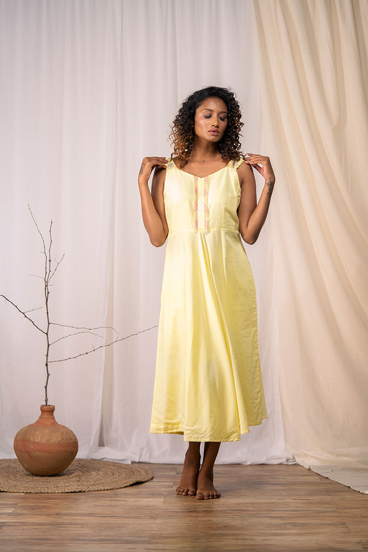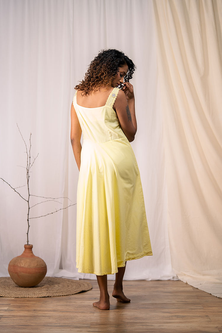 'ROSEMARY' Pastel Yellow Mulmul Cotton Dress