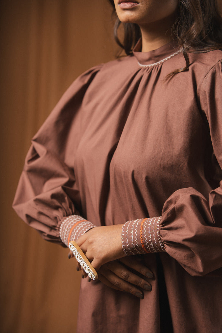 Effortlessly elevate your look with this Co-ord set, featuring a chic band collar, statement sleeves, and cuffs adorned with exquisite threadwork detailing. It comes with comfortably loose-fitted elasticated pants.
