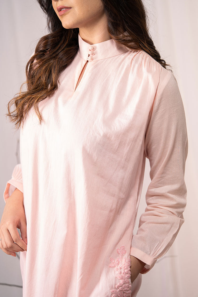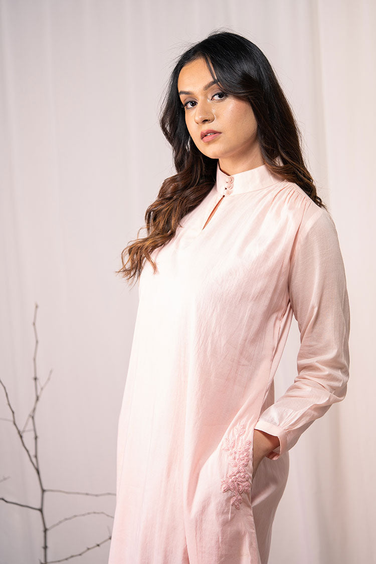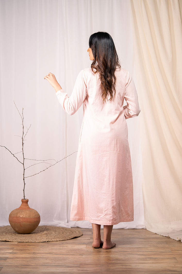 'SHY BLOOMS' Blush Pink Mulmul Cotton Dress