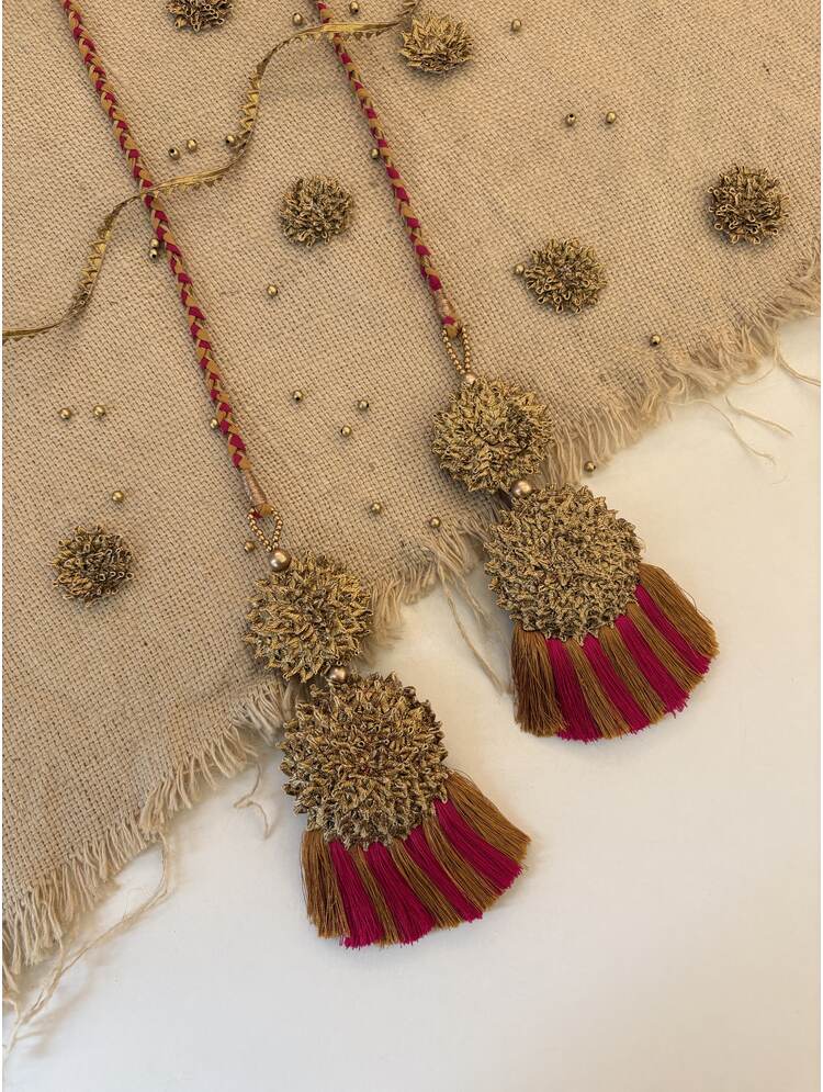 'SONPARI' Mustard & Pink Hand Crafted Tassels
