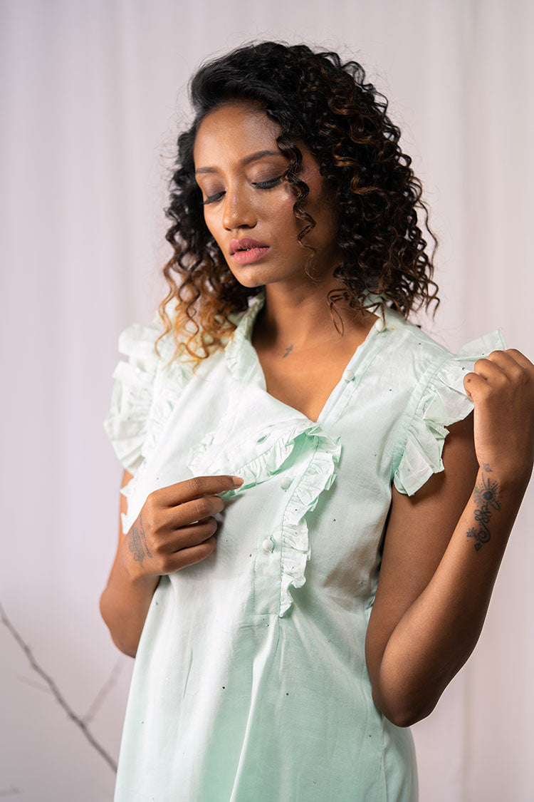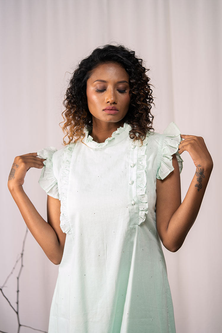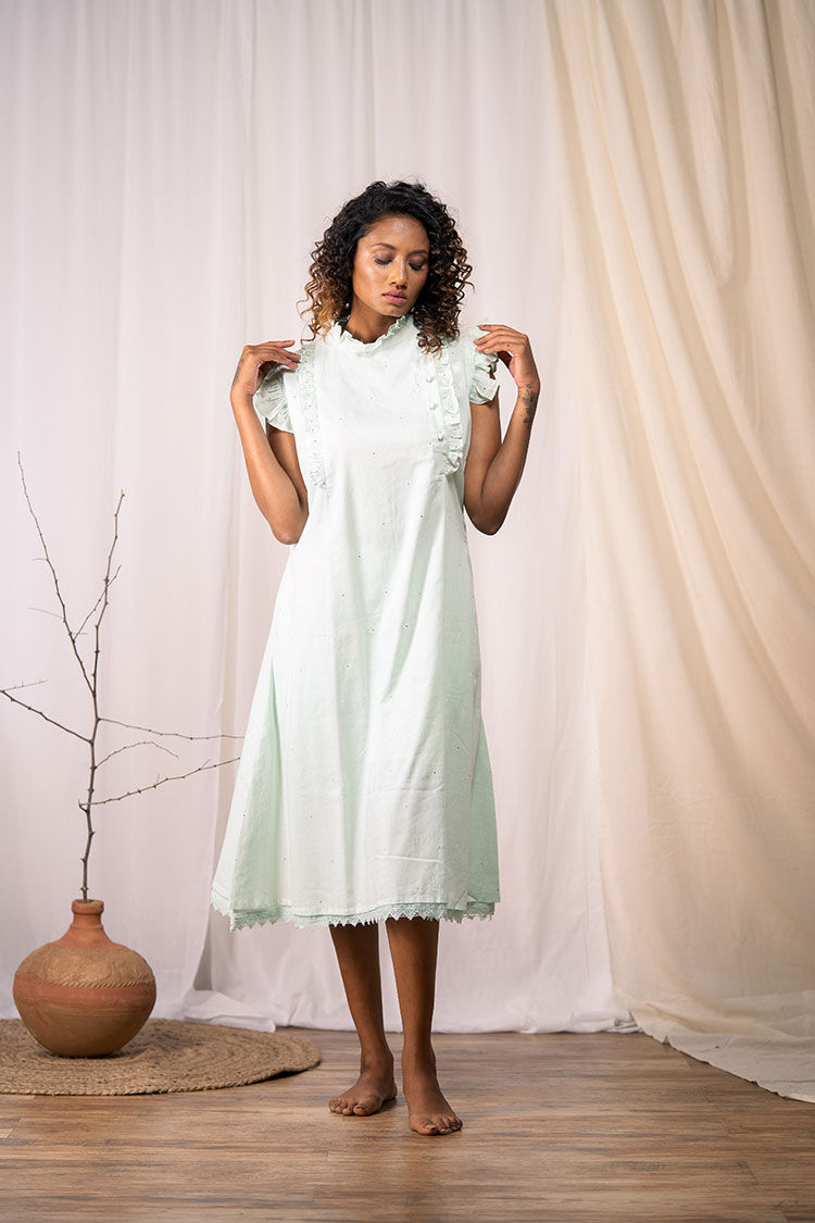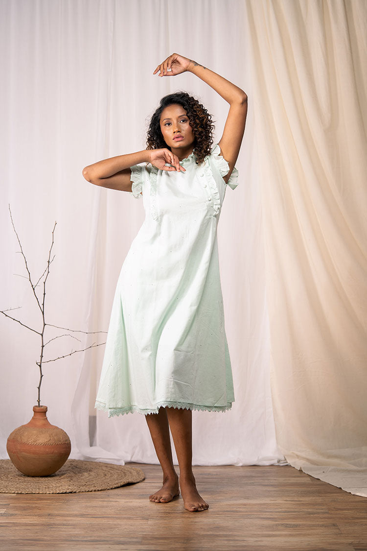 'SUNBEAM' Mint Green Mulmul Cotton Dress