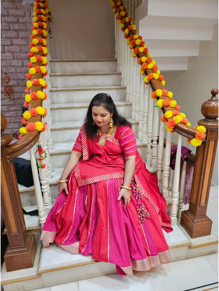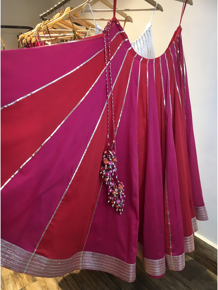 'SURKH GULABI' Pink & Red Mulmul Cotton Kalidar Ghaghra