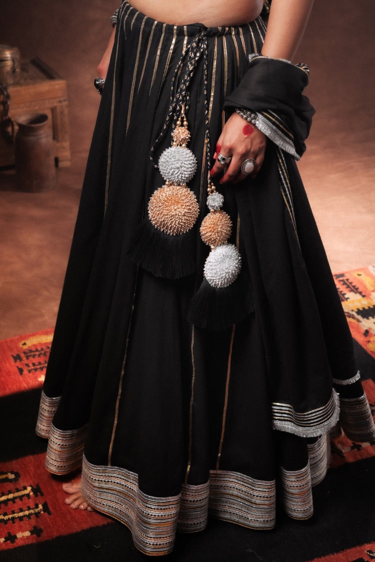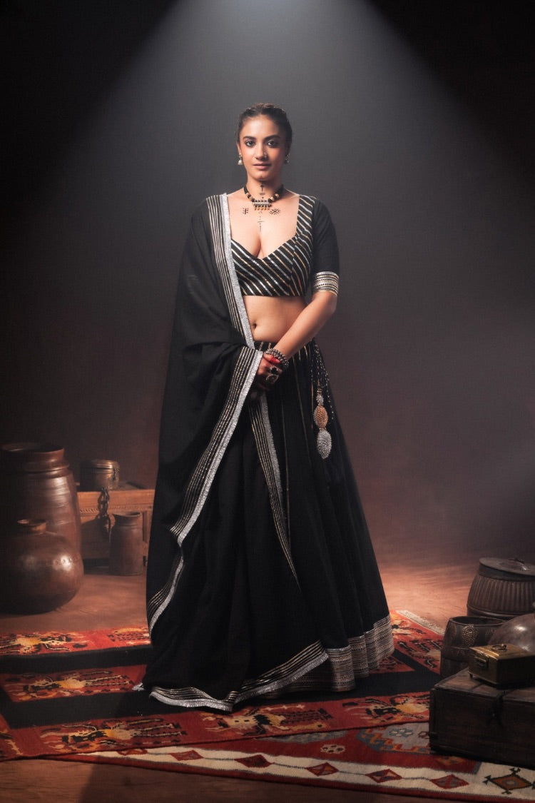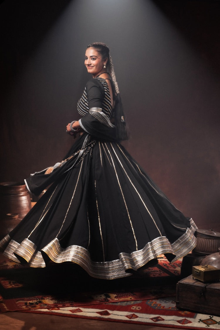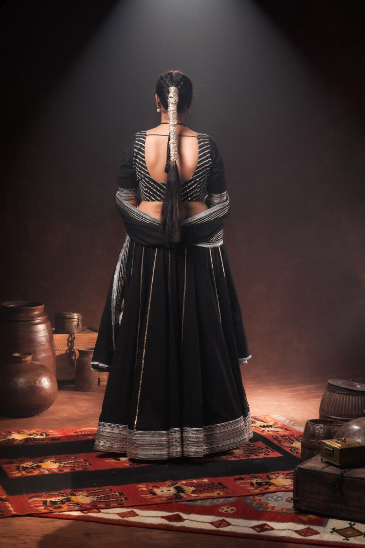 'ZOHRA' Black Mulmul Cotton Kalidar Ghaghra